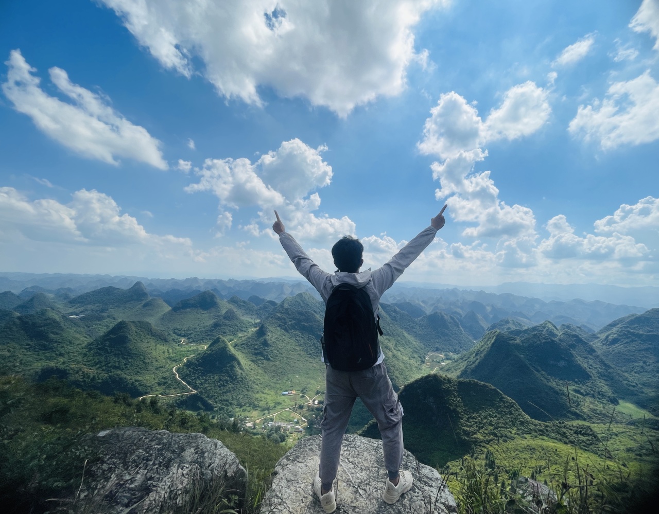 14:40 到达莫六山顶,一览众山小,观看喀斯特地貌,及英西群峰众岭。