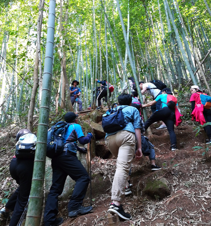鸡枕山山路异常陡峭,路程虽然不长,但是持续的上坡和陡峭的下坡都有不小难度。沿途高山流水,清清翠竹,堪称“天间仙境”,登临鸡枕山之巅,奇观尽收眼底。