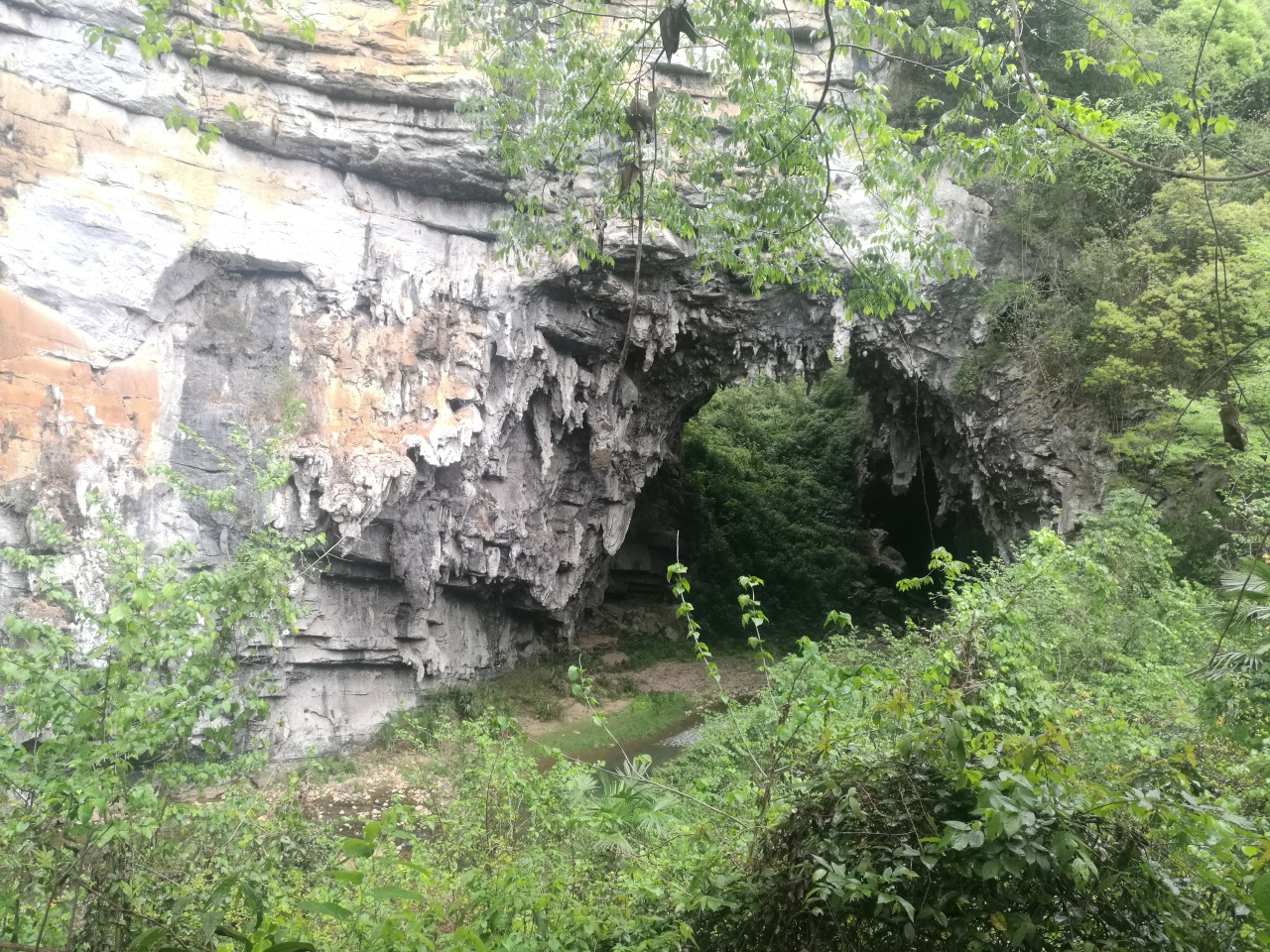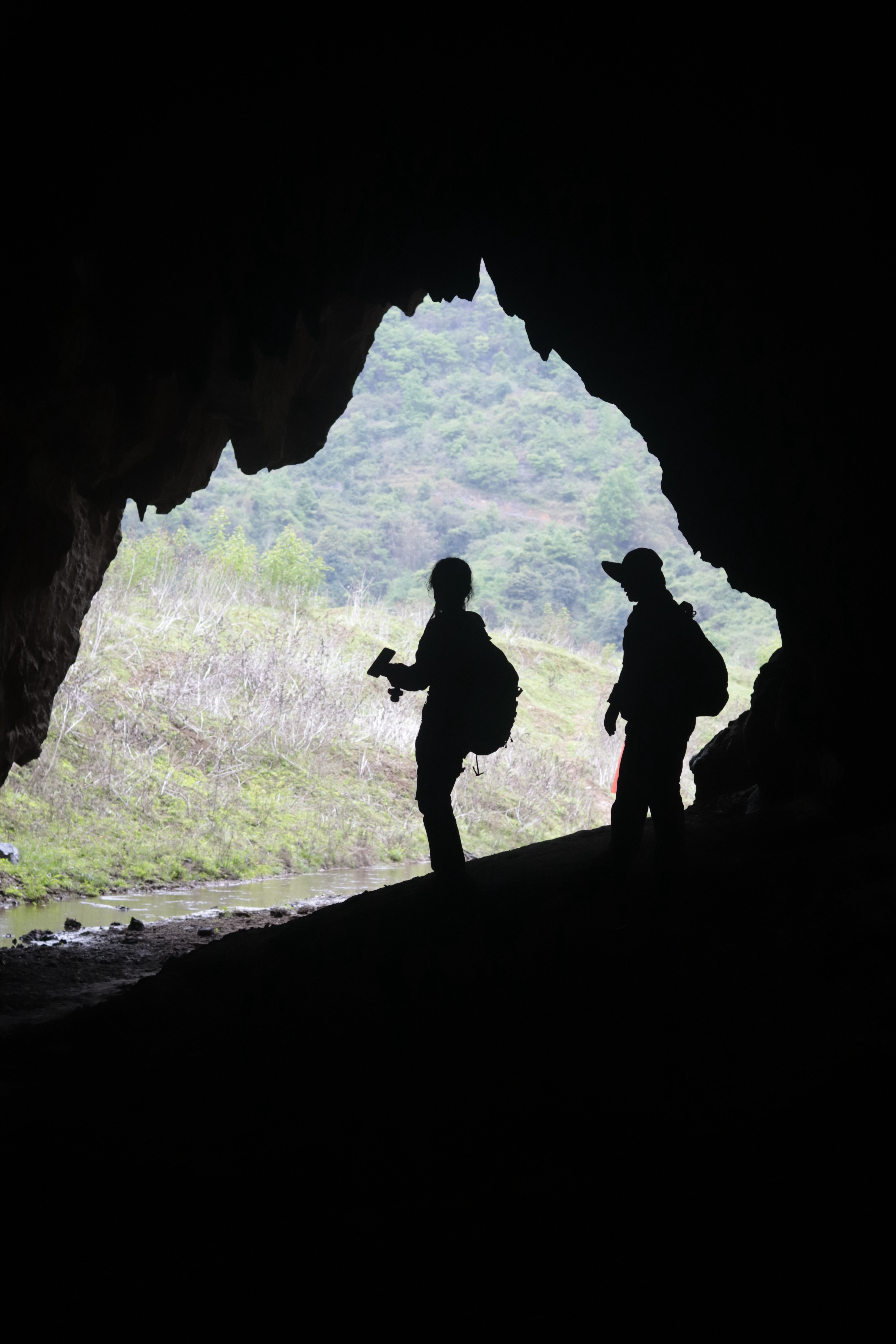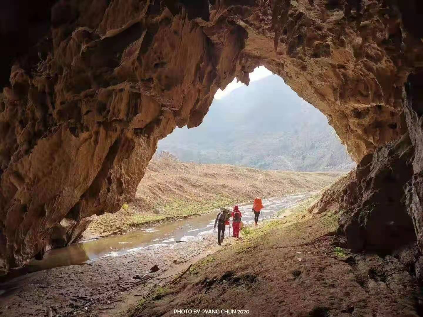 16:40一路经过古道,废弃村落,茅草丛,苍耳丛等原始生态环境到达湖洞村(牛鼻洞入水口)的大草原,拍照游玩,进洞探洞;