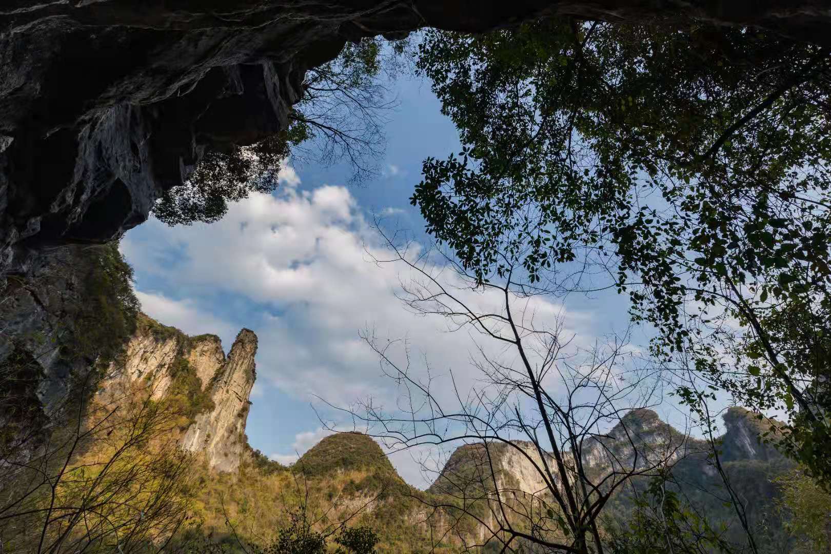 它丝带般在喀斯特峰林之间缠绕,还能欣赏到罕见的特大天坑-饭甑洞天坑,风景秀丽而原始。