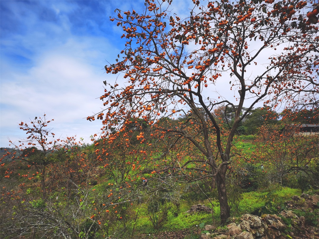1. 【桂峰村百亩柿子】大红灯笼高高挂,桂峰山下百亩柿子庆丰收,簇拥枝头,红艳动人