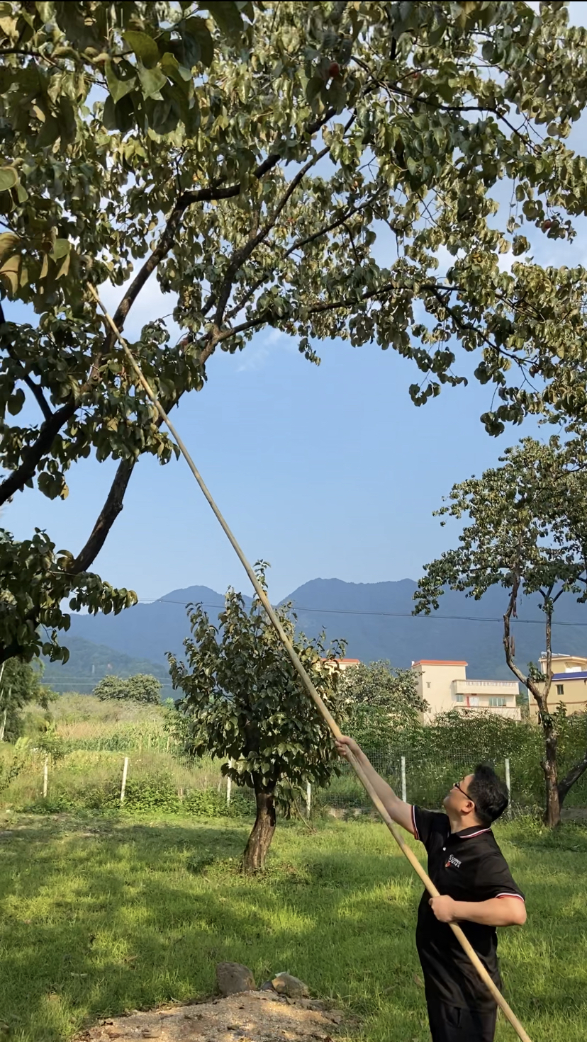 拿着长竹竿摘柿子咯,感受乡村独有乐趣