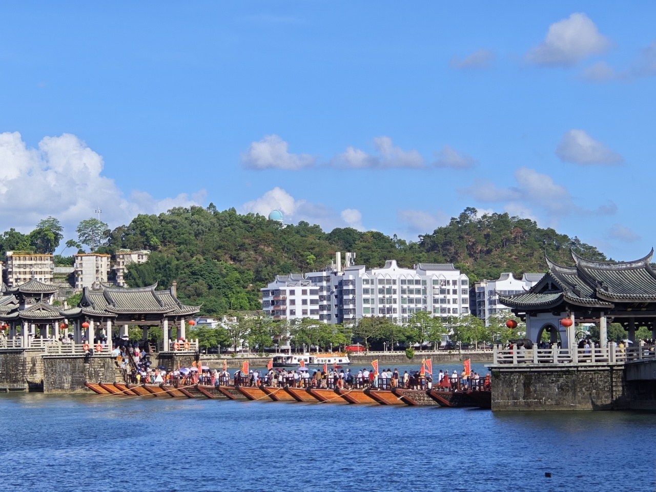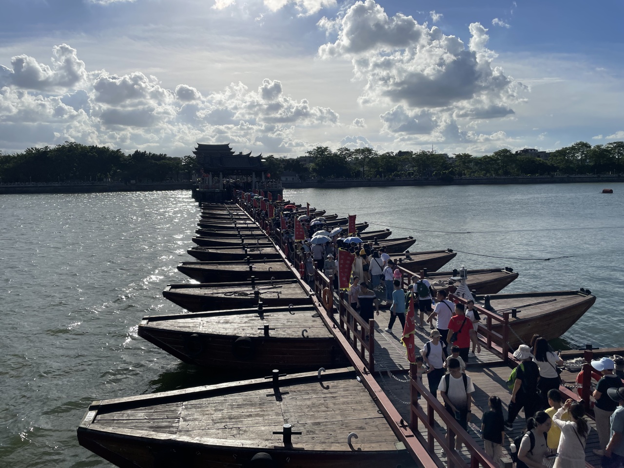 潮州广济桥,古称康济桥、丁侯桥、济川桥,俗称湘子桥,位于广东省潮州市古城东门外,横跨韩江,是潮州八景之一,中国四大古桥之一,国家AAAA级景区 ,被桥梁专家茅以升誉为“世界上最早的启闭式桥梁”。
