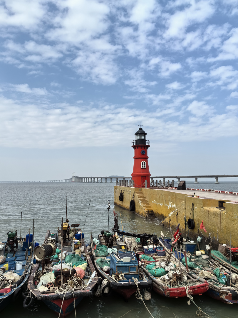 长山尾灯塔位于启航广场,灯塔塔身全红色,十分亮眼,风格清新,吸引了众多文艺青年到此打卡。这里还能远眺南澳大桥全景!