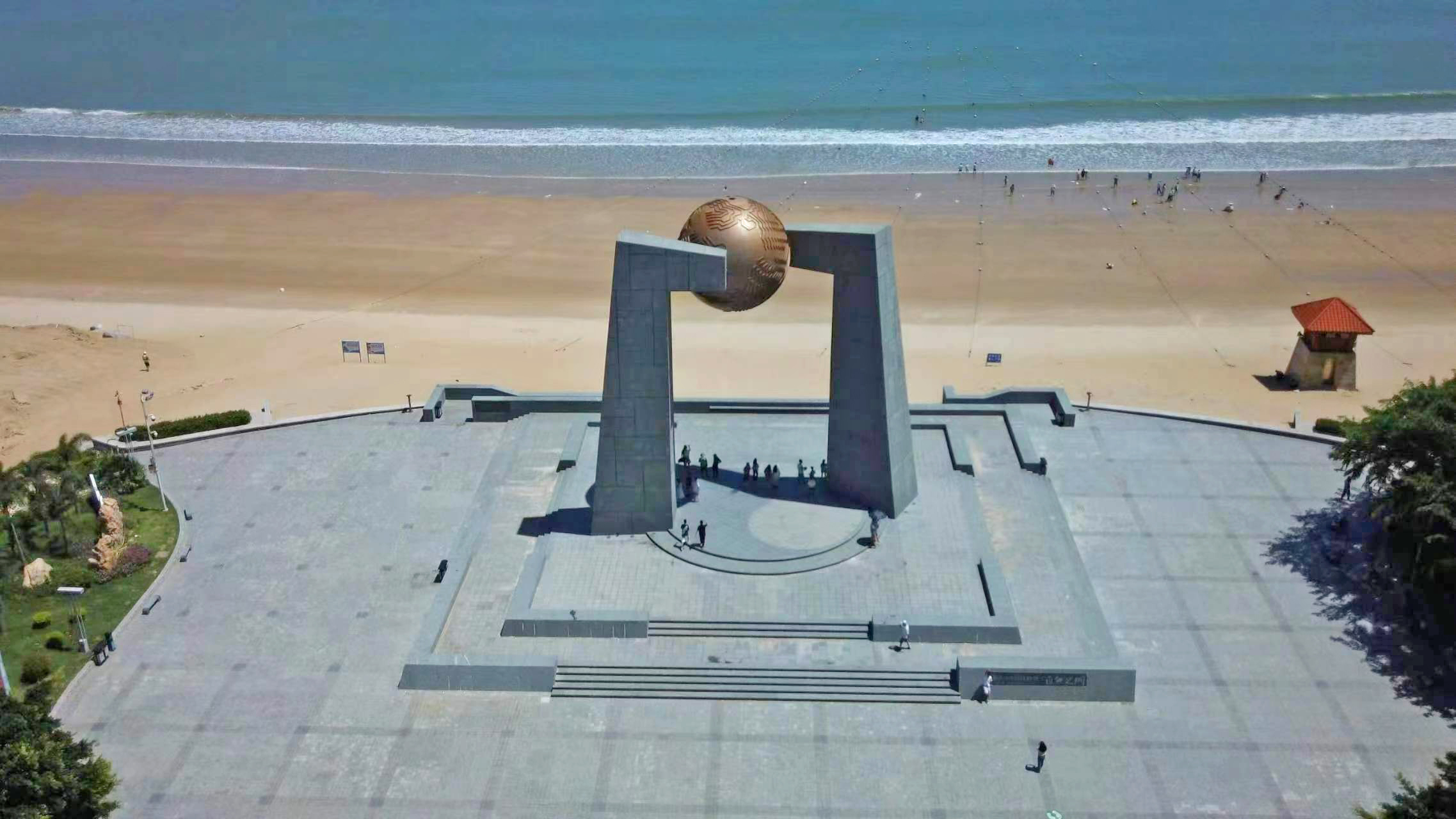 “自然之门”是我国已有的11座北回归线标志塔之一,也是唯一一座位于海岛上的北回归线标志塔。塔身由汉字“门”字演变而来。每年夏至正午,太阳直射北回归线,日影将穿过上方圆球中心圆管,投射地台中央,达到“立杆不见影”的效果。