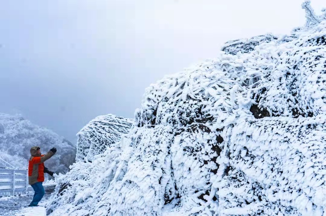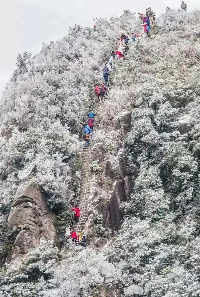 冰雪雾凇!整座山银装素裹,如同童话世界。