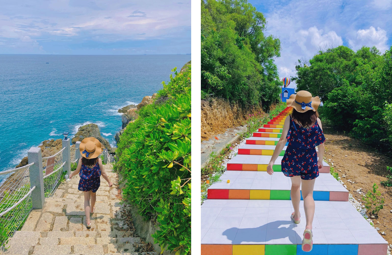 你也可以现场购买山体公园门票,登上山体公园,行走于滨海栈道上,悬崖观海,爬彩虹楼梯,眺望远方蓝蓝的大海,俯视山脚下的银白色沙滩。还可以自费进悬崖泳池参观或游泳。