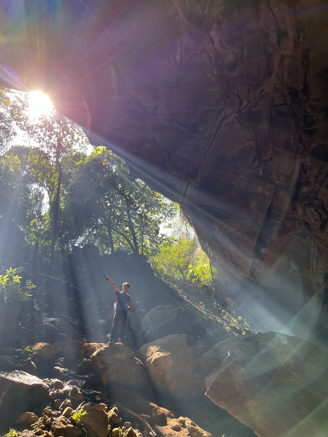 全程一共13洞,值得看的洞8天窗岩,拍合照的地方,大石头很出片,洞顶有一个方形凹陷;洞9黑岩,不起眼的小入口,一开始得蹲着进入,慢慢通道开朗,山洞很大岔路多容易迷路,路面湿滑,有很清但很深的水潭,注意安全;洞12波斯岩,也就是他们说的“耶稣之光”打卡点,阳光从洞口射入拍到丁达尔现象很美,今天的光线不够手动加光,注意此位置易有落石;