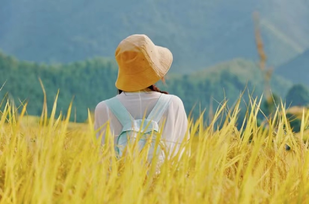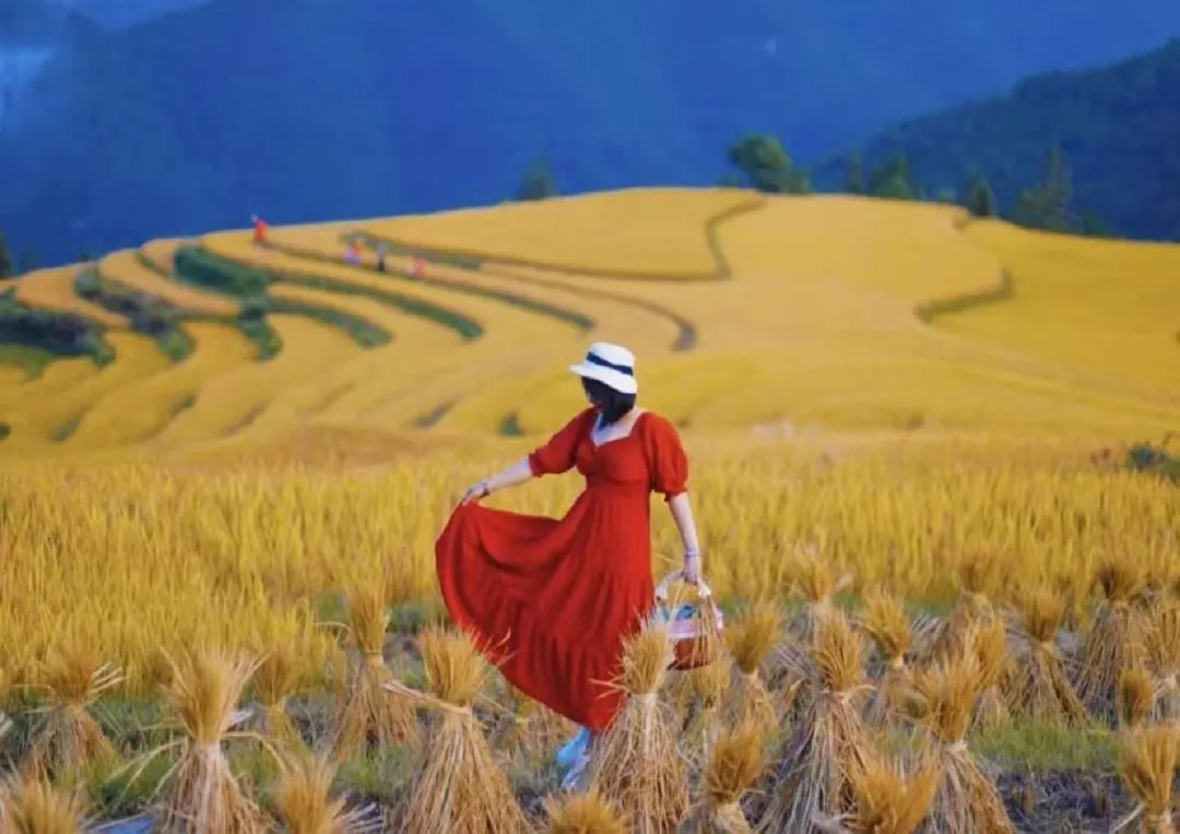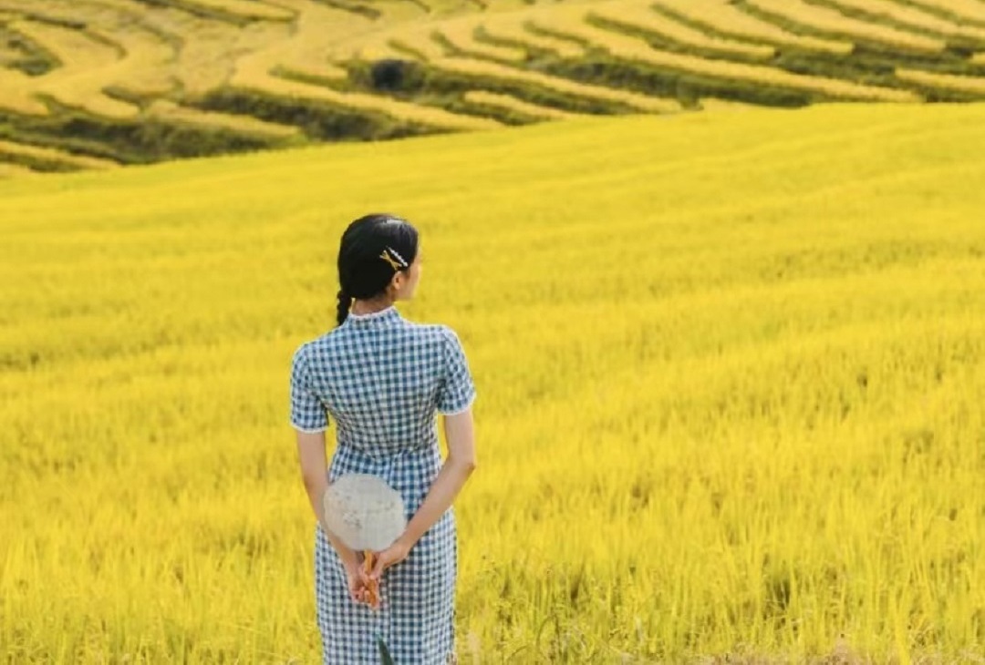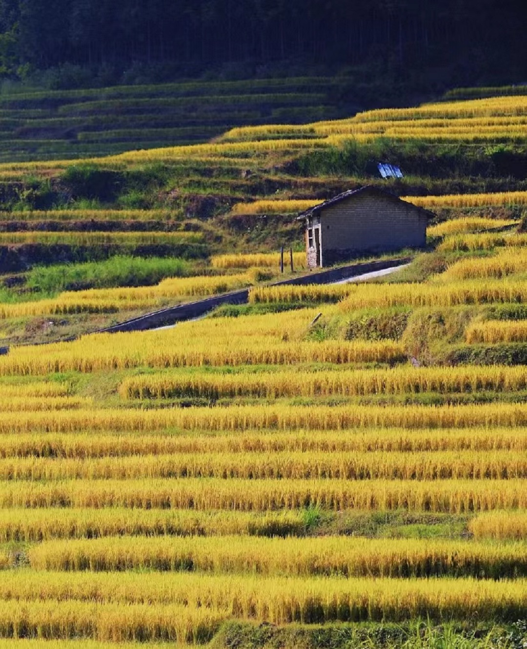 一大片金灿灿的金黄稻田,这景色绝对美爆了,