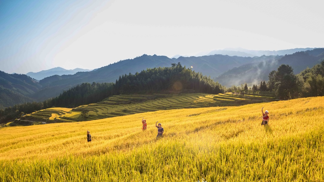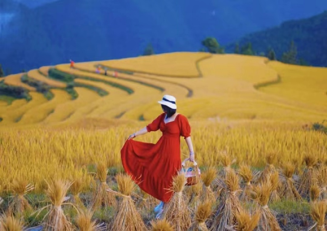 08:40 左右到达【欧家梯田】购票入园,然后开始吃午餐啦,也可自由组队体验美食。餐后欣赏广东最大醉美的梯田;在梯田间尽情拍照,感受梯田的恬静与壮观,在梯田间穿特色民族衣服自由拍摄。