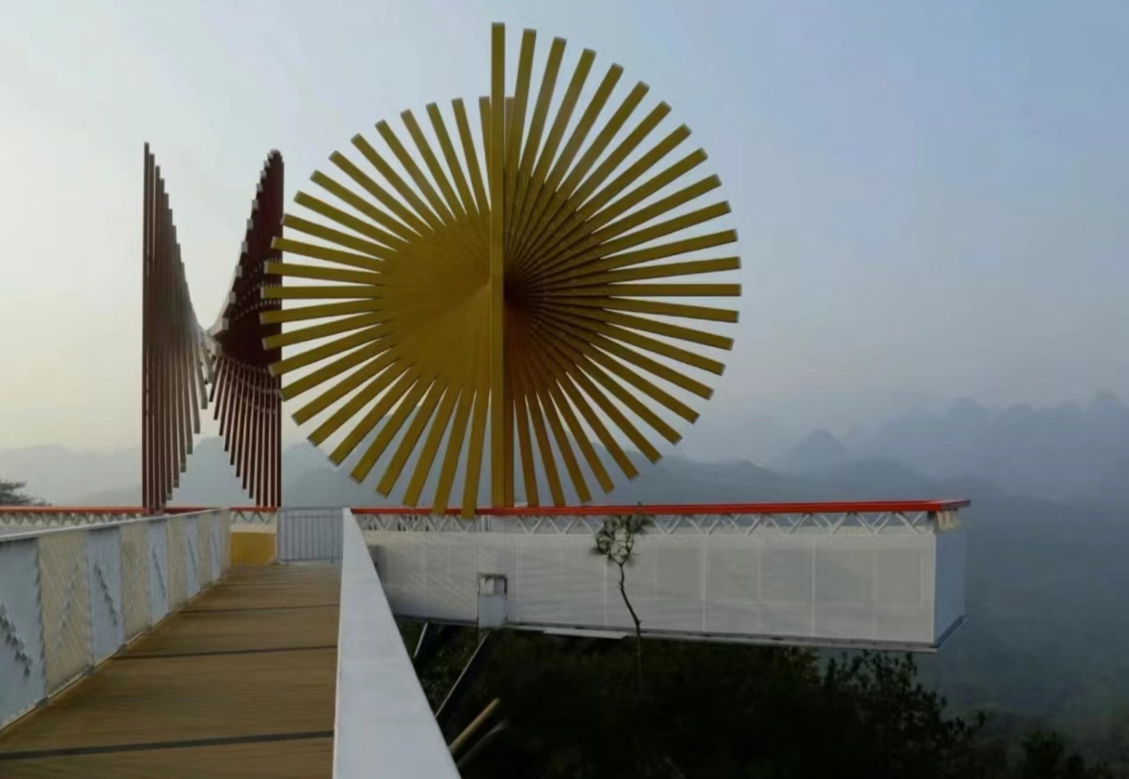 桥的端点,两个蝴蝶一样的雕塑翩翩起舞,