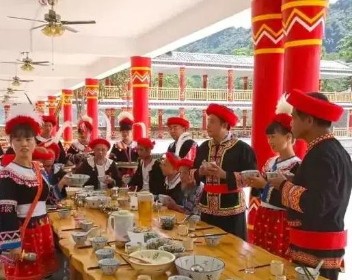 长桌宴是瑶寨接待远到而来的客人的盛宴,
