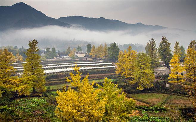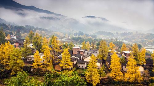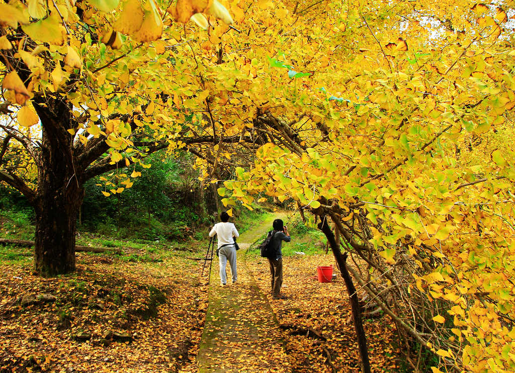 11:00 前往榜上村漠川乡榜上村,一路瓜果飘香,一路金黄银杏,它或许没有海洋乡的名气大,但丝毫不比海洋的差,大树插落于山野之中、小溪流水旁,它的美,不可言喻(往年最火爆的地方);村内桂北古民居非常有特色,石板路、福字街、黑砖土瓦木屋、村里有一棵需十几人才能环抱的巨大樟树~自由午餐,品味桂北特色美食,等待美食之余,亦可欣赏榜上银杏,美哉;