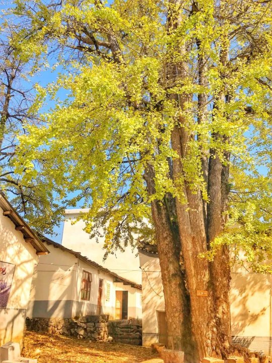 14:00到达白石乡徒步穿越起点(村口有几棵800多年的银杏,晨曦中,炊烟袅袅,老房子与古树交相辉映,古香古色,漫步其中细细品味其韵味)
