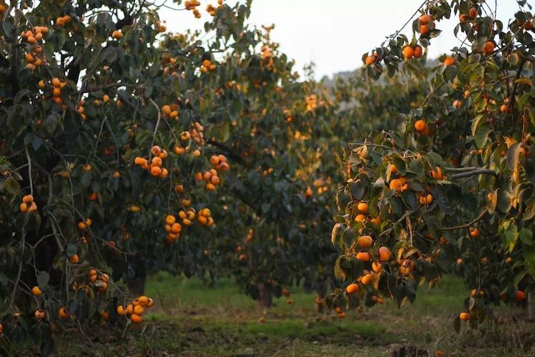 漫山遍野的都是柿子树,红红的果实把枝头都压弯了,落下的柿子叶在阳光的照射下,金黄一片,您一定会被这景色迷住的......