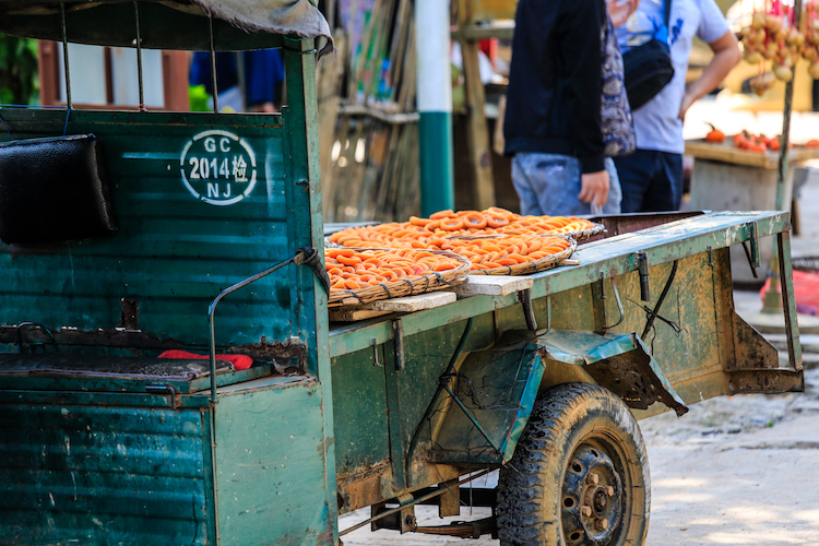 村民们把摘下来的柿子放在一个小机器上把柿子的皮去掉,放在外面晾晒,过段时间就会变成柿饼,价格在12-18元一斤,味道鲜美。
