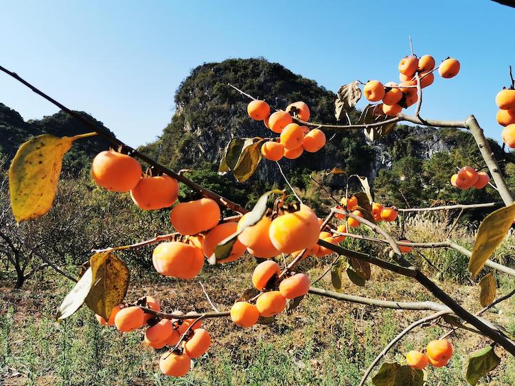 2、恭城柿子:家家门前晒秋,火红的柿子,枝头挂满硕果,是秋的结晶。