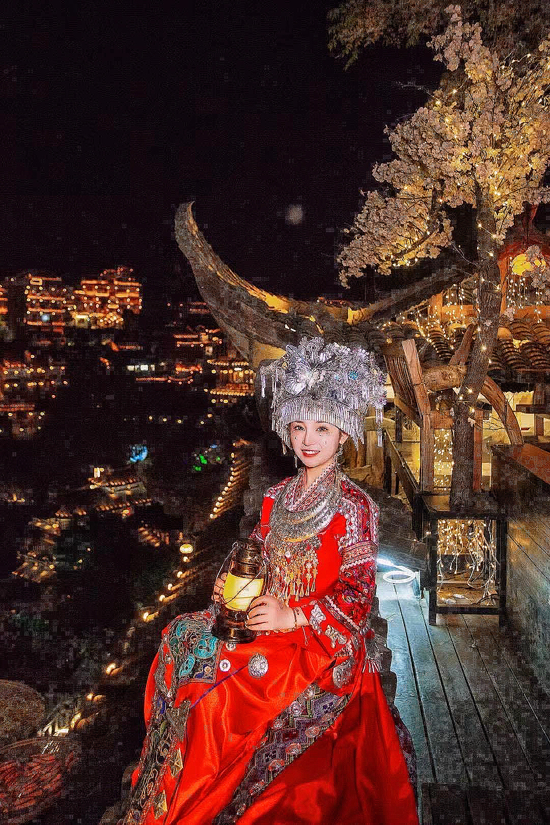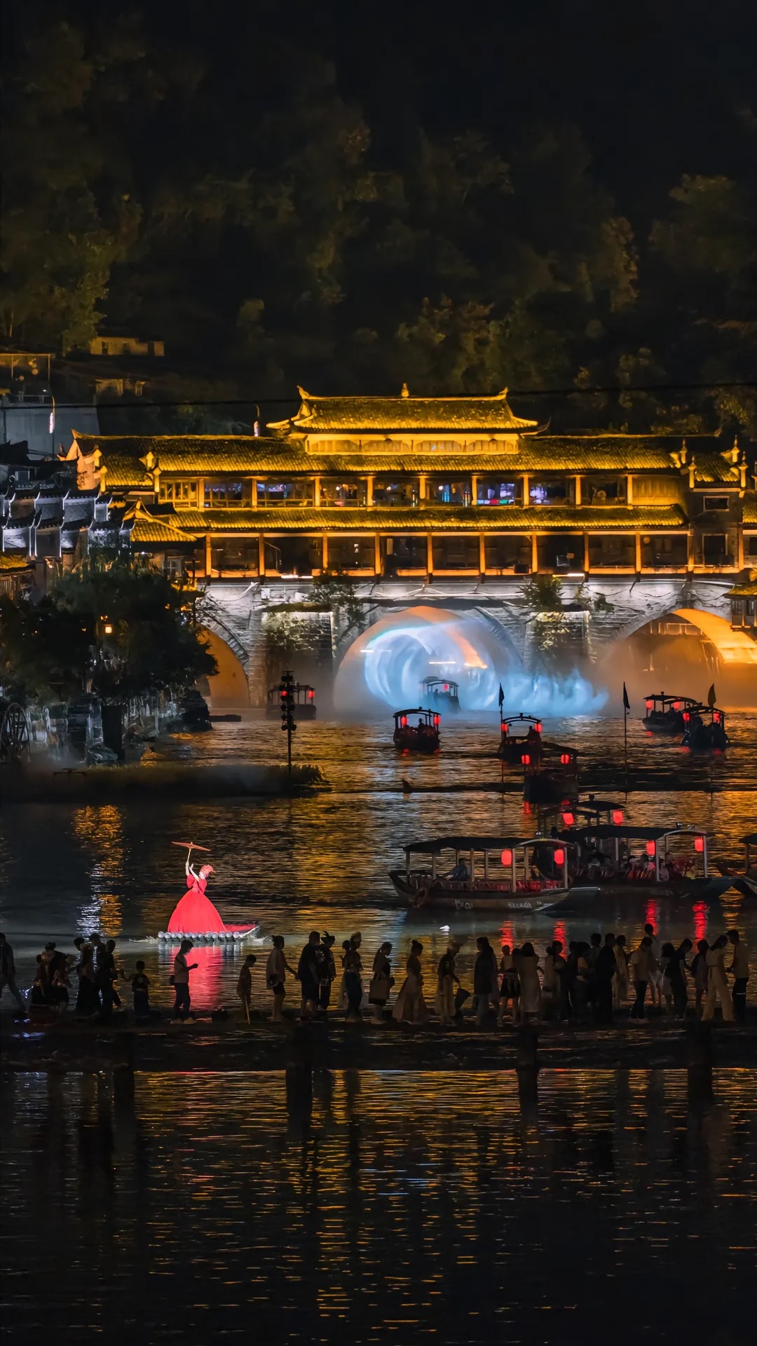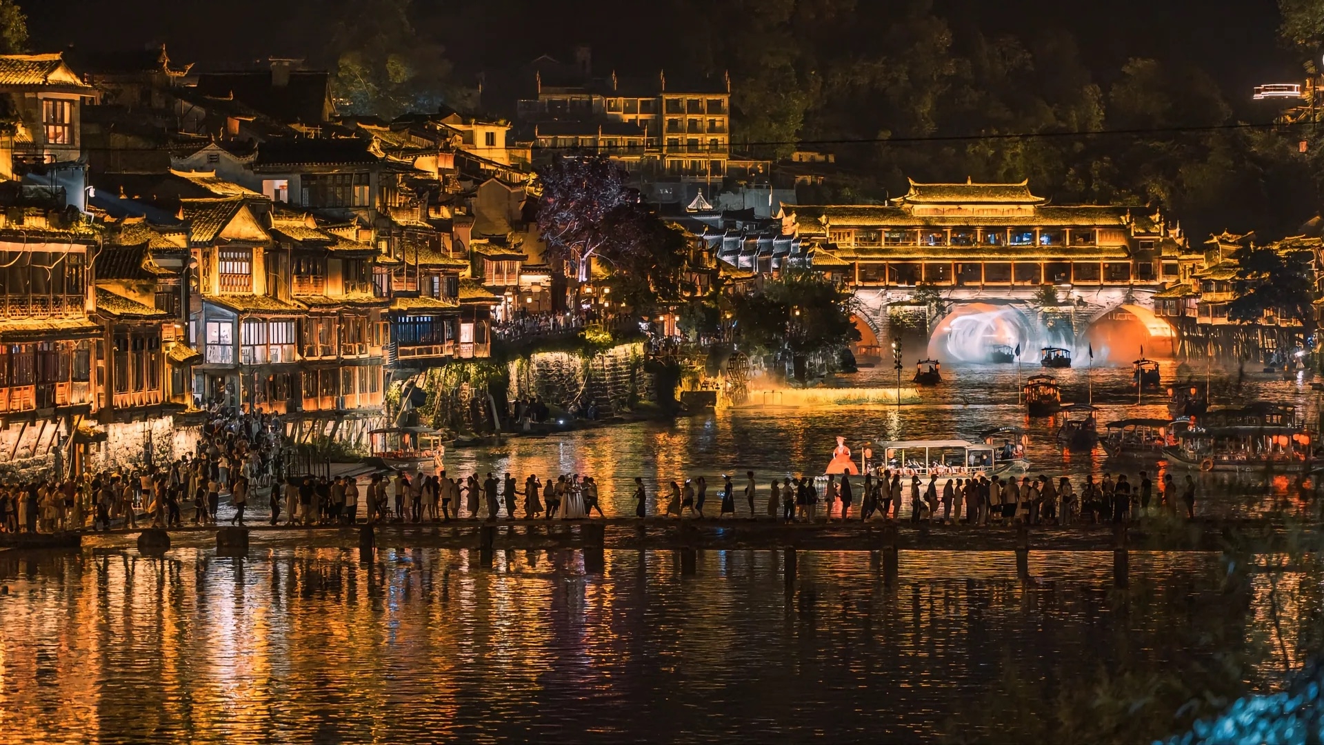 当两岸吊脚楼上的灯倒映在江面