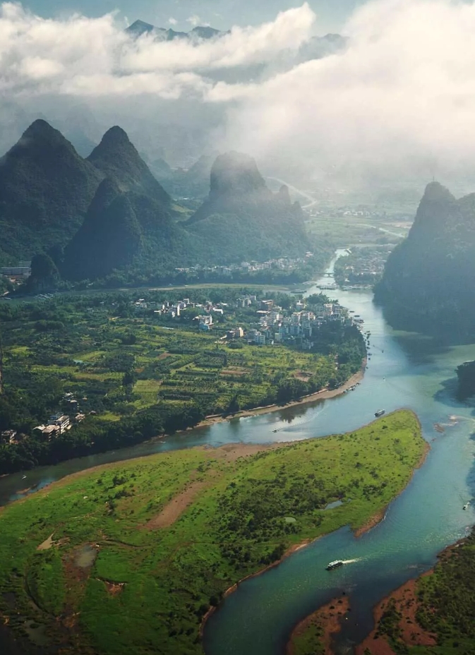 登上桂林漓江边逍遥楼,鸟瞰桂林山与江,江与城的完美结合,一览大好河山。