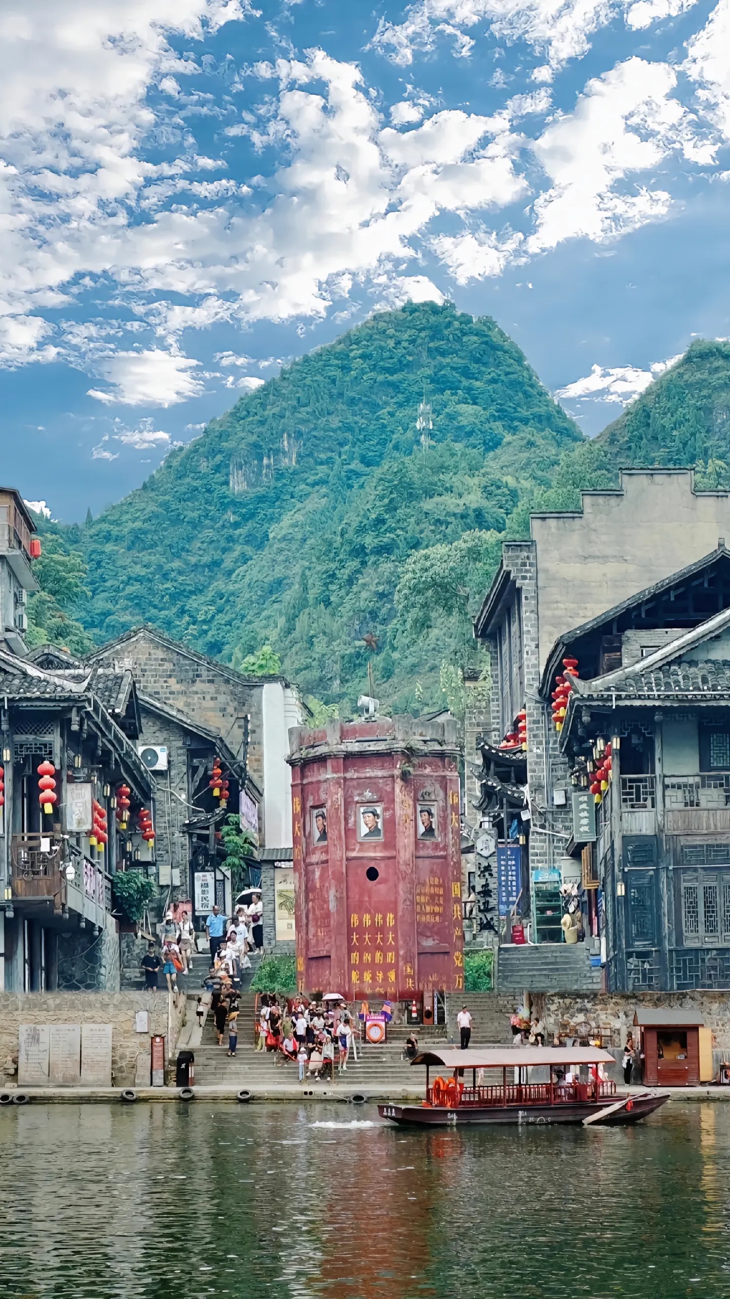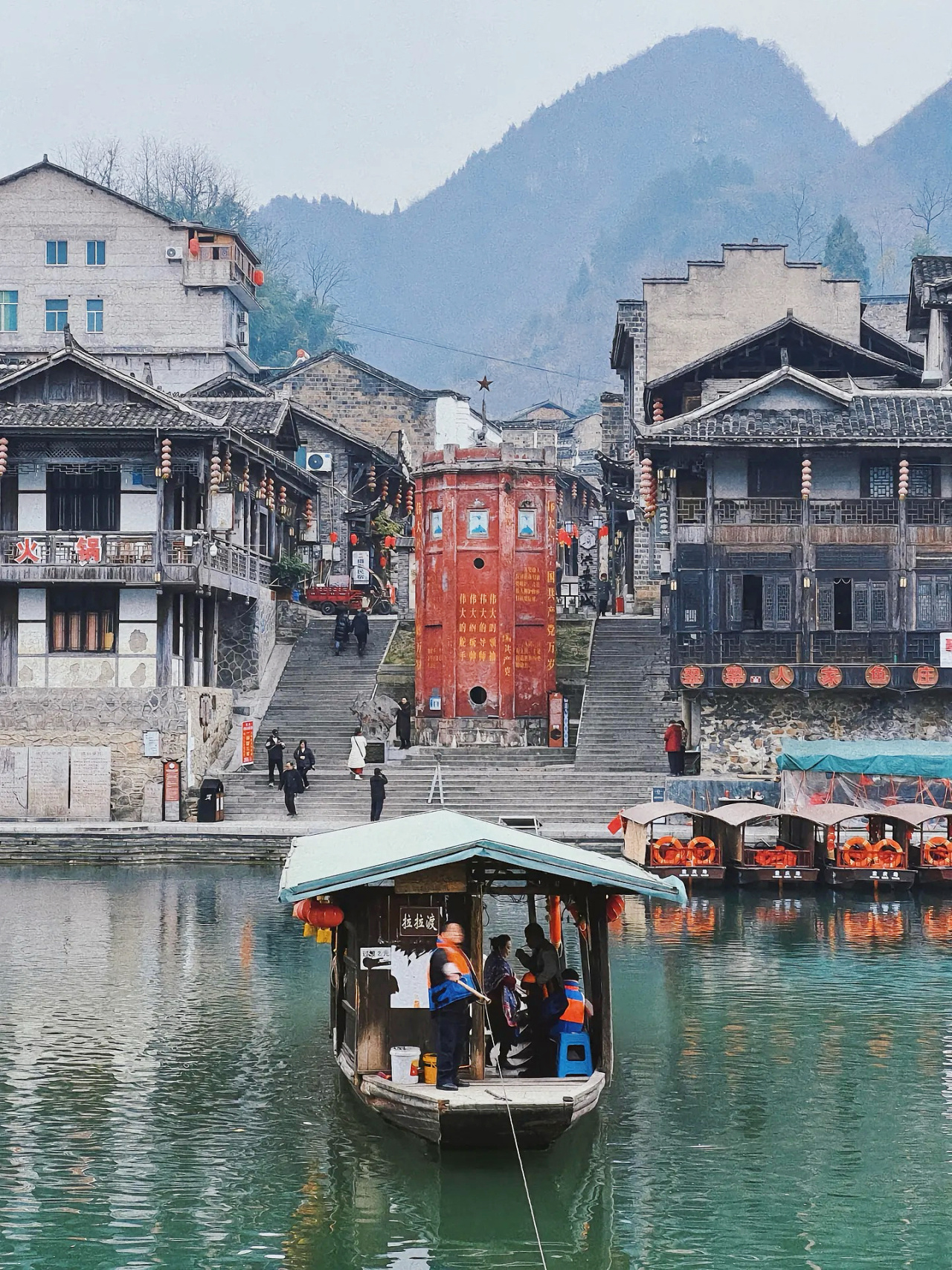 09:30 游玩茶峒古镇,在这里你可以花2元乘坐拉拉渡前往重庆吃个重庆火锅也可以乘坐拉拉渡过去贵州吃鲜美的酸汤鱼,发一条朋友圈可以定位三个省。