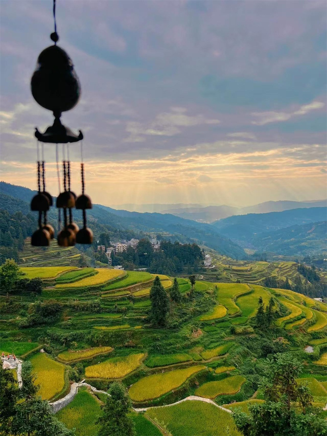16:00 有兴趣的小伙伴,可以跟随领队前往【堂安梯田】,秋日的梯田稻浪翻涌,映衬着侗族特色的木房屋,营造出一幅迷人的山水画卷