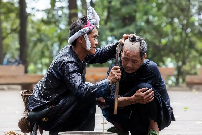 用镰刀剃掉男性头部四周大部分的头发