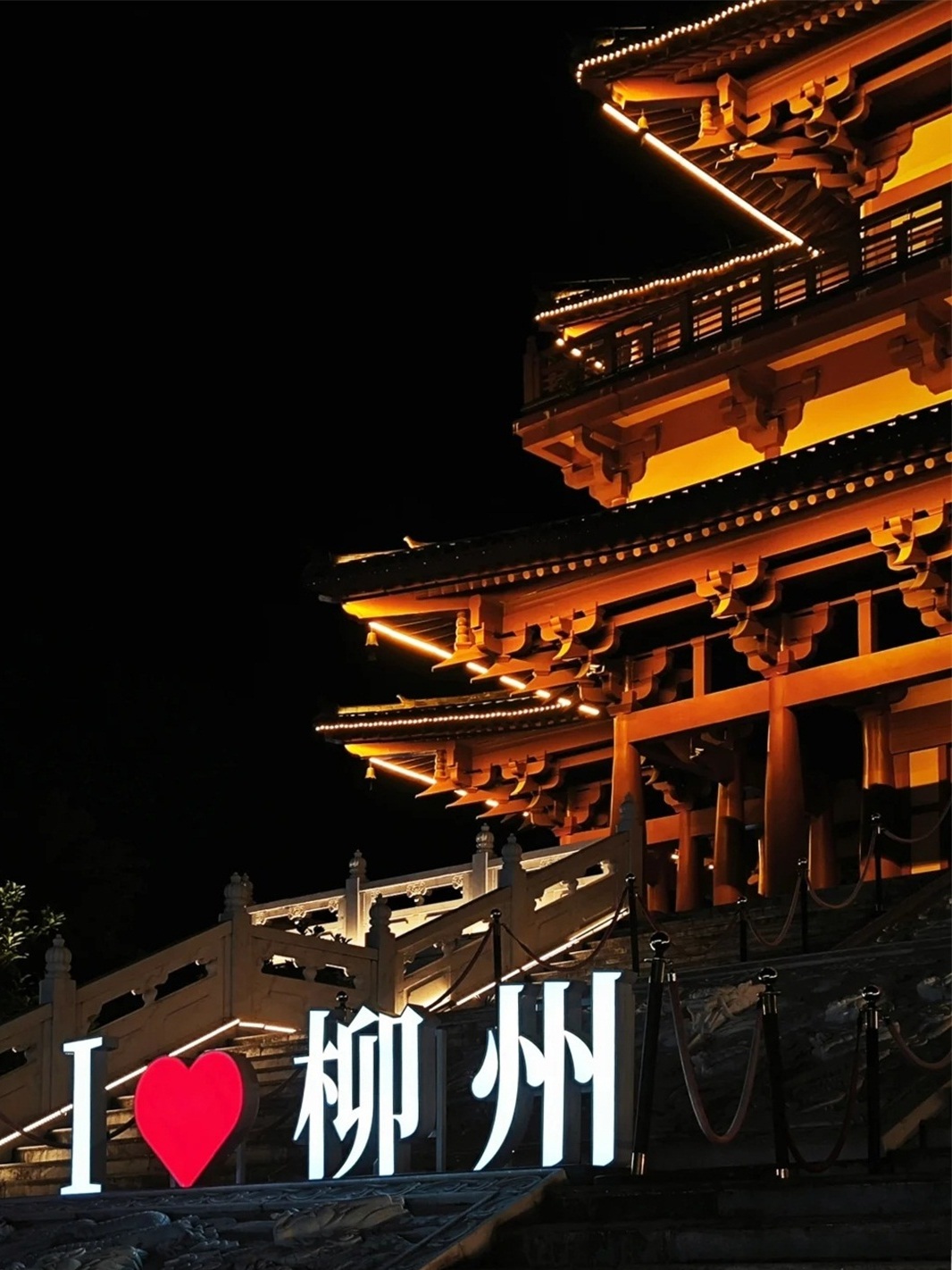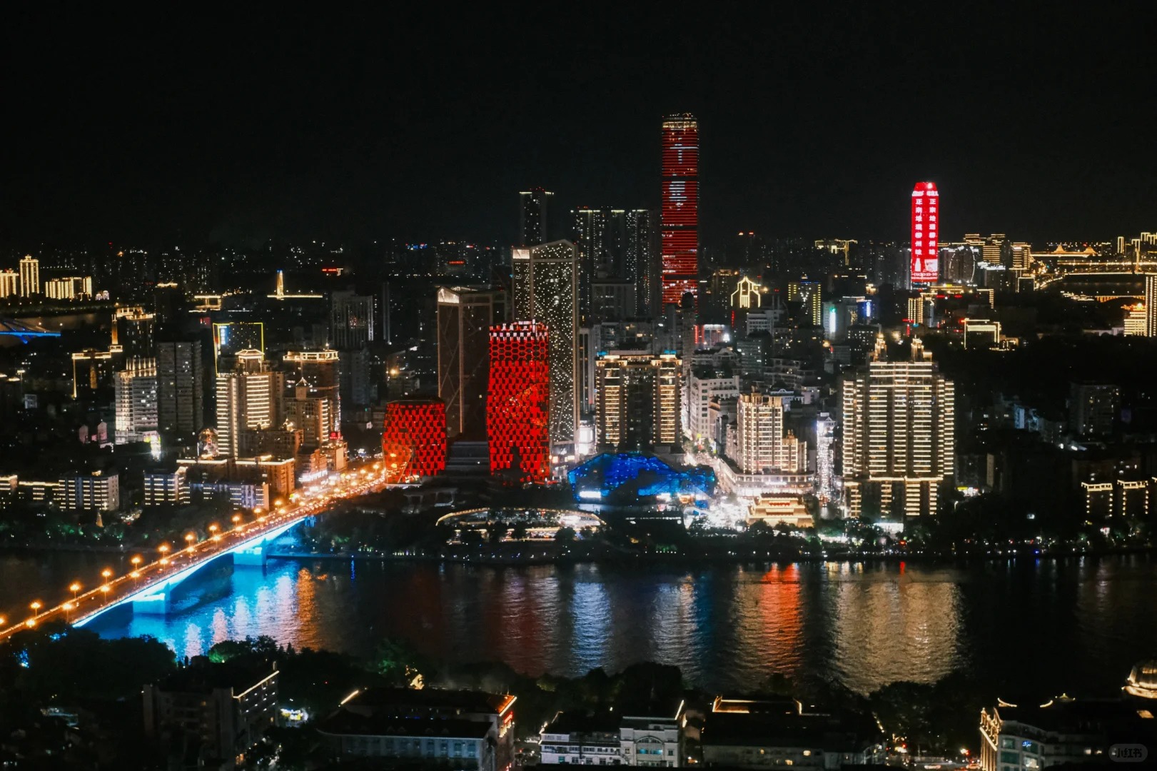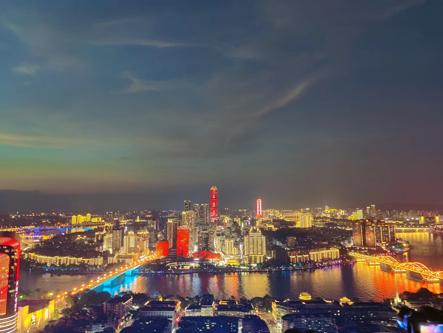 华灯初上,柳江两岸车水马龙、流光溢彩