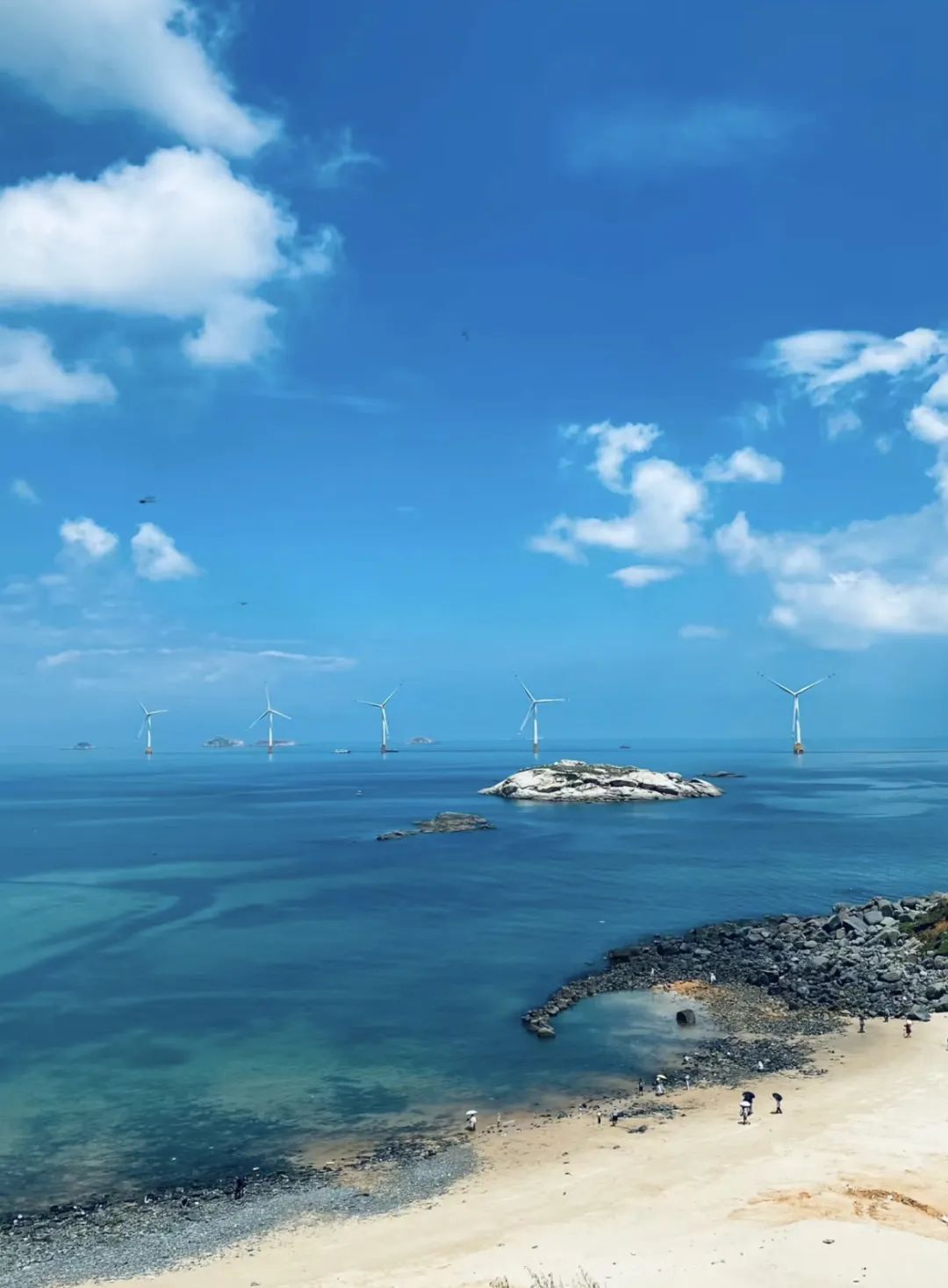 10:30 到达平潭岛,跟随领队租小电驴一路向北环岛游(不会骑电驴的小伙伴不用担心,可以坐领队或其他队友的车呦),一路无敌海景,山海之间的环岛路、海上风车田、冰岛同款的黑礁石、蔚蓝大海、长江澳日落、满天繁星,更有古朴的石头厝渔村、这里的风景也几乎可以满足一切我们对海岛的想象