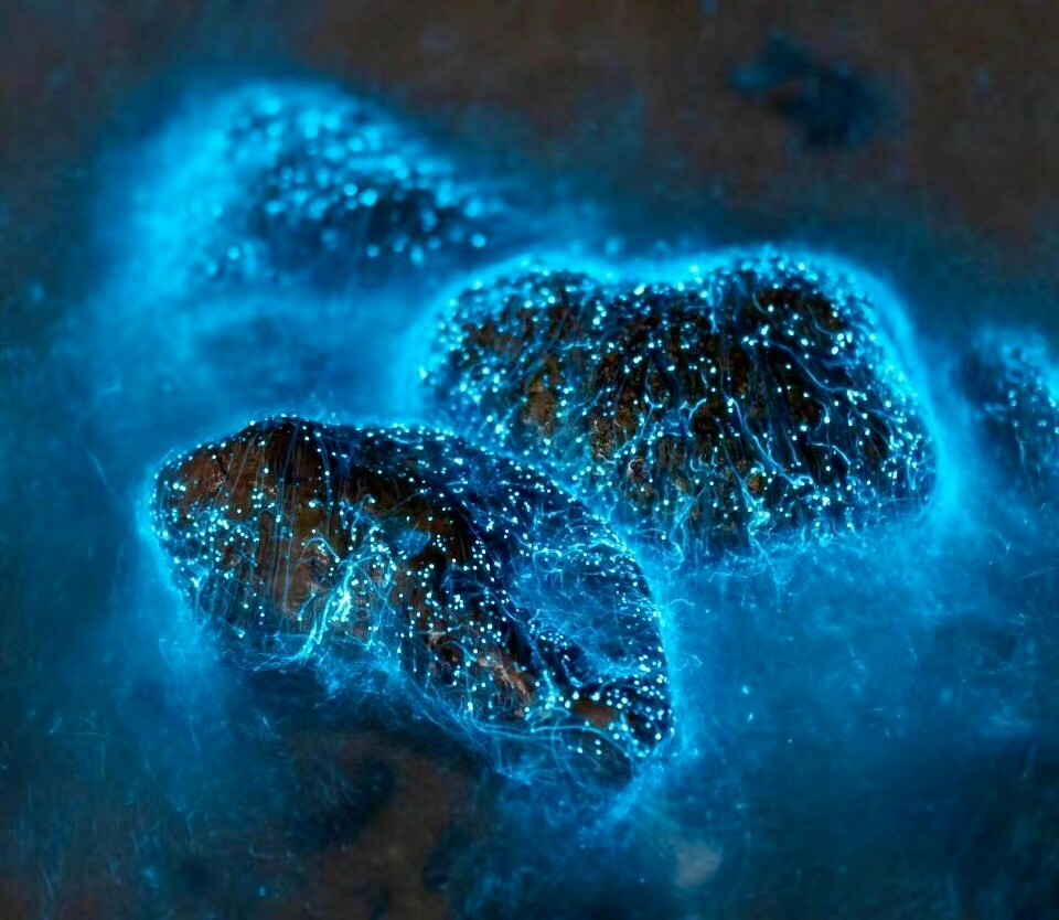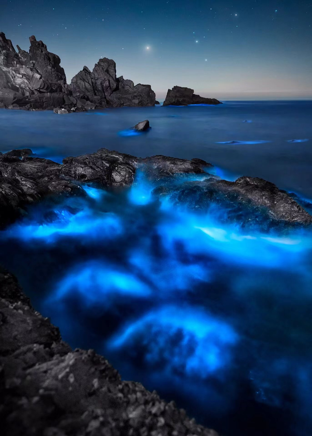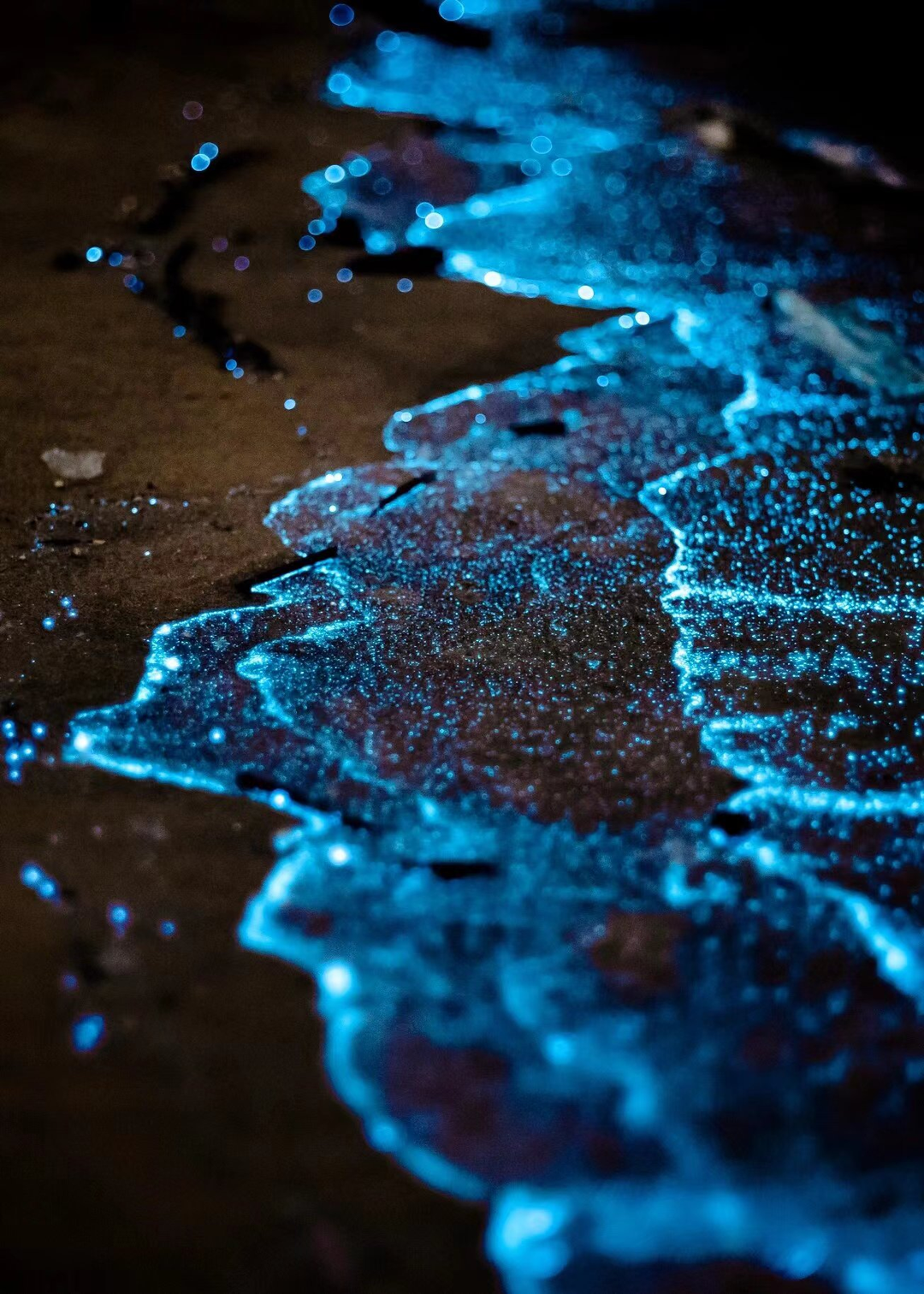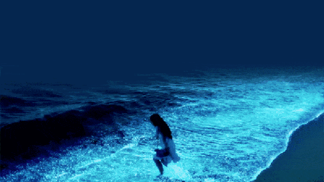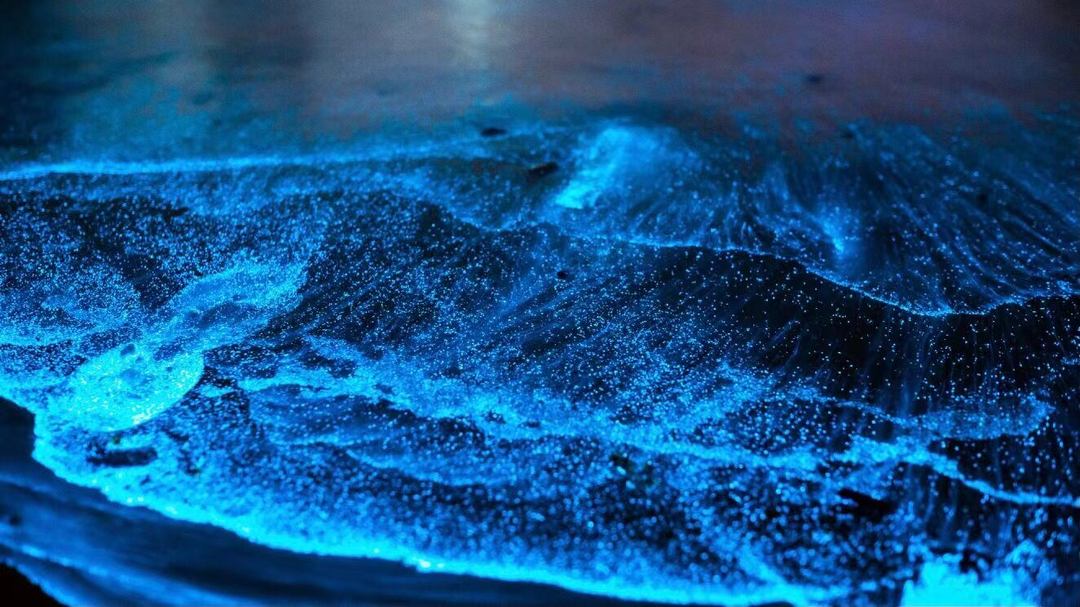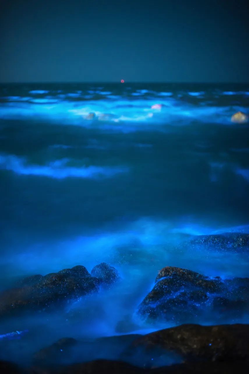 绵长的海岸线上充盈着幽蓝色的光点