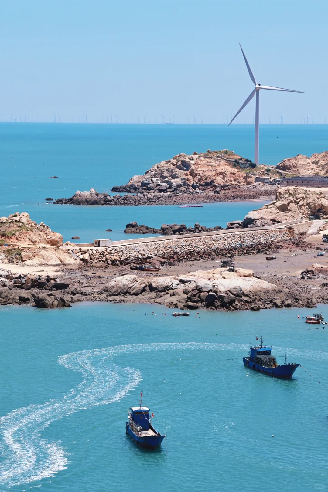 风车+玻璃栈道+无敌海景+东方圣托里尼梯田石厝,让人不得不惊叹。这里海水清澈,一眼万里,风轻浪柔,波光晶莹,潮声如乐,媲美仙本那,秒杀小垦丁!