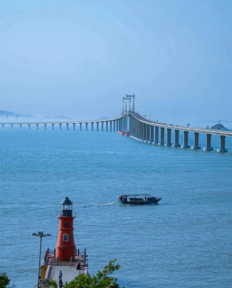 它的建成结束了只能坐轮渡上岛的历史