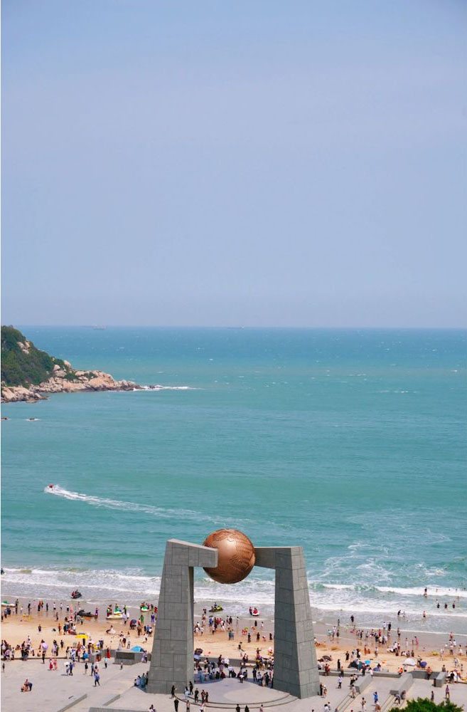 海滩沙粒直径小于0.2mm,金町湾度假区方 圆20公里无污染