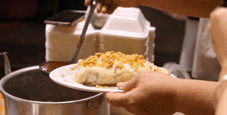 来到潮州,一定要尝尝这道甜点——鸭母捻。里面有椭圆的大汤圆,放入甜汤中,加入柿饼,燕麦、白果等,一碗简简单单的甜汤却最能俘获吃货的心。