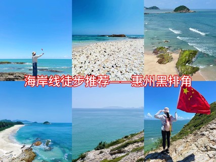 黑排角东靠大洲港,西至双月湾,爬升下降不多。沙滩礁石线路。为初级徒步线路,为广东地区比较合适的入门海边徒步线路。海滨风景宜人,不可多得的海边徒步线路。