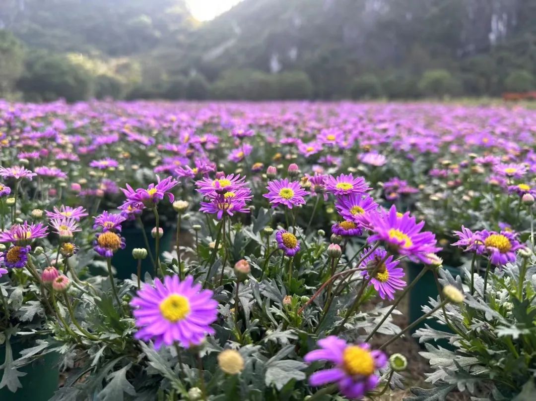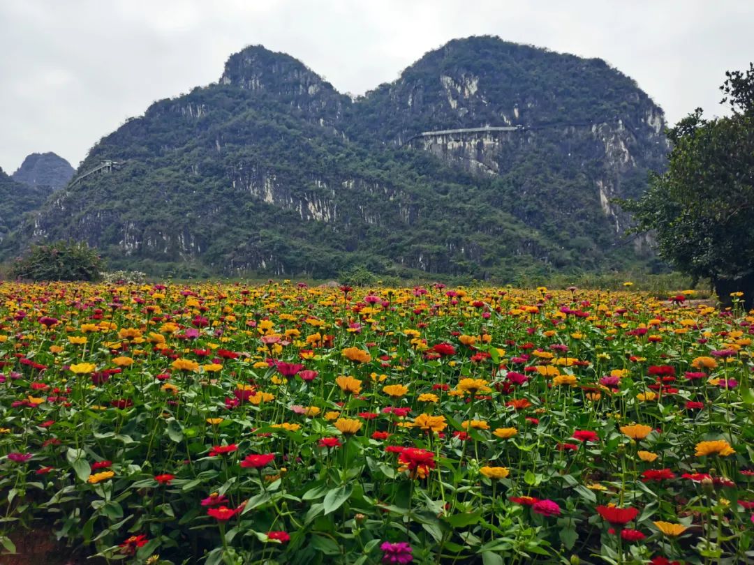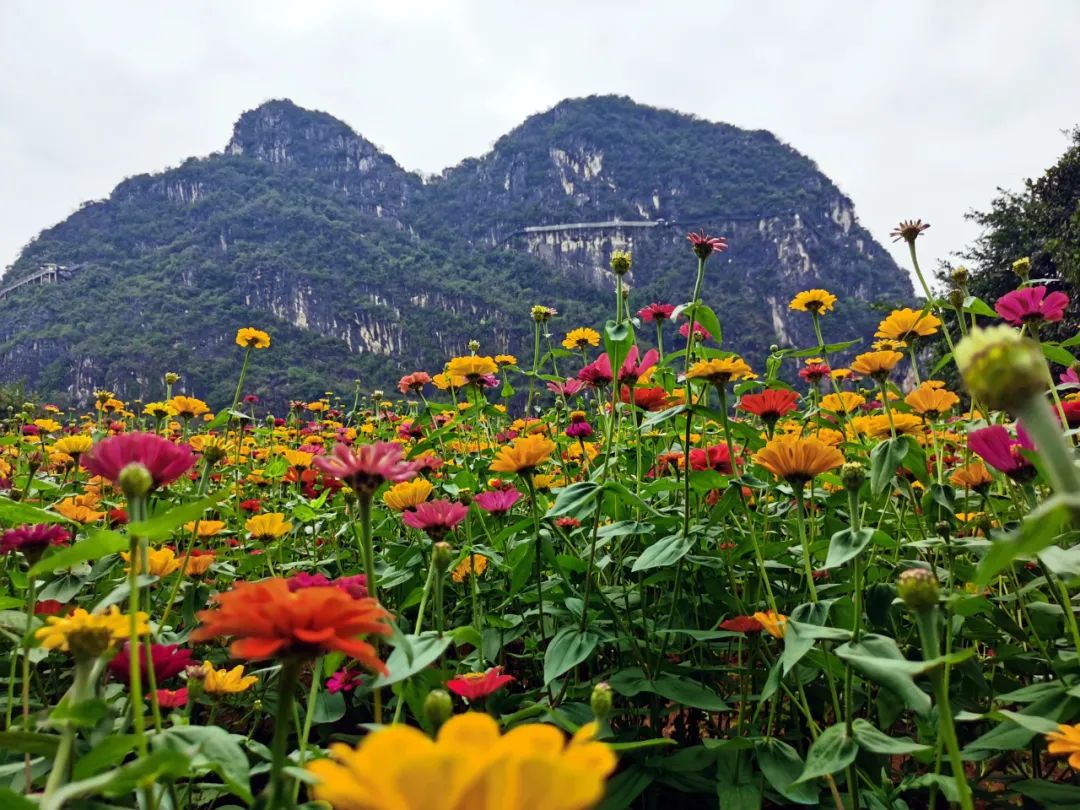 据说是有七个仙女下凡,想沐浴飘到鸡笼顶,看到这山头光秃秃,怜悯之余广袖一拂,就把天上的云朵化作七种颜色的天仙花,造就了这片震撼南国的大美景观