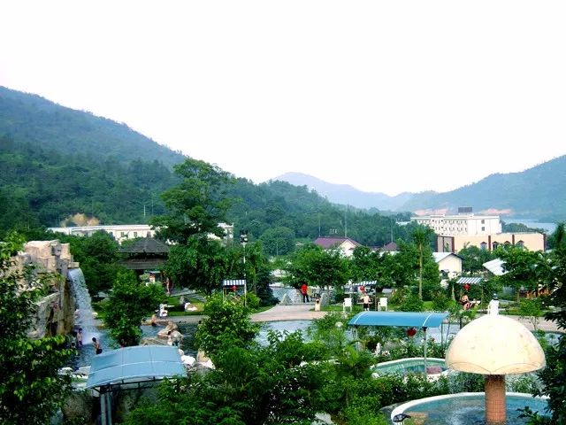 阳春春都温泉度假村座落在高山盆地之中,占地面积近万亩,其中水面积近二千亩。