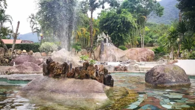 度假区建有露天温泉池38个,室内温泉18个,各类高级客房、豪华别墅、日式木屋共138套;中餐厅设有300个餐位;另有会议厅、茗茶室、理疗中心、购物商场、娱乐中心等配套设施;是旅游,探险集会度假,休闲,娱乐的人间胜地。