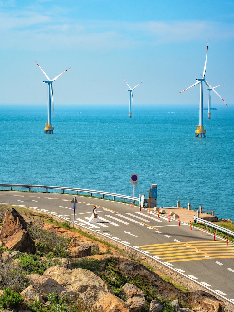 平潭岛是世界三大风口海域之一(‌百慕大三角、好望角和平潭海峡),所以它最有特色的景观就是海上风车群。