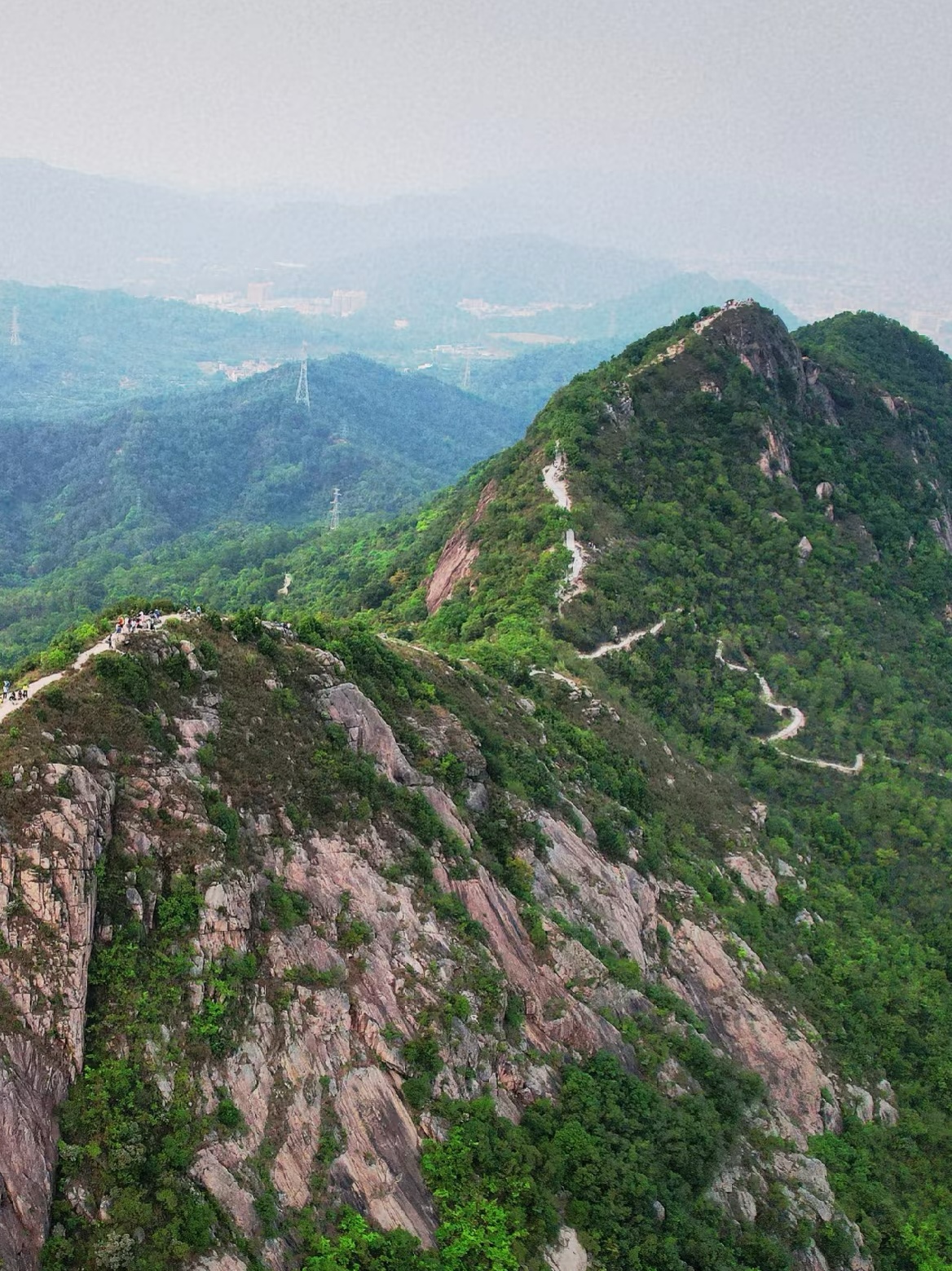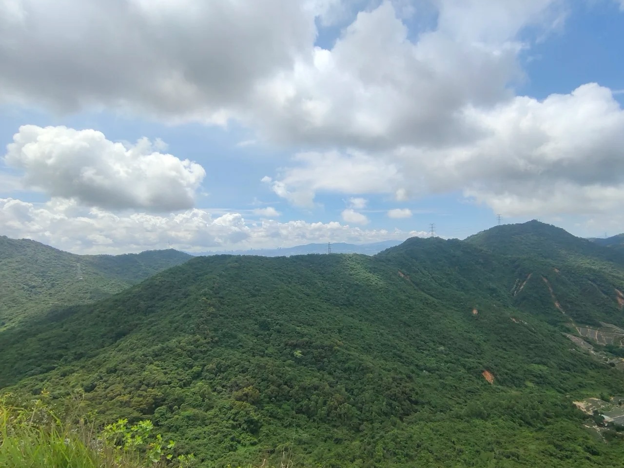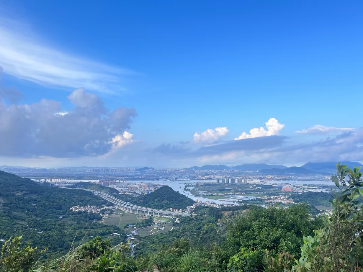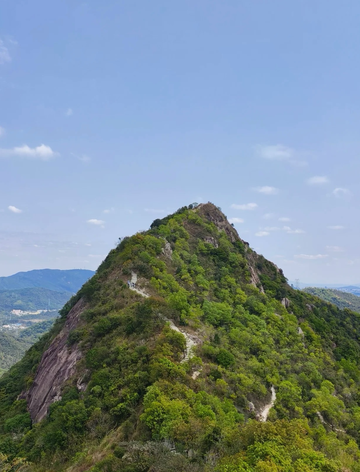 12:30 登顶丫髻山,主峰海拔386米,西面的悬崖正对西江,从山顶远眺,山脚下是菠萝田,山脊线自然风光绝佳,拍照出片效果一流。