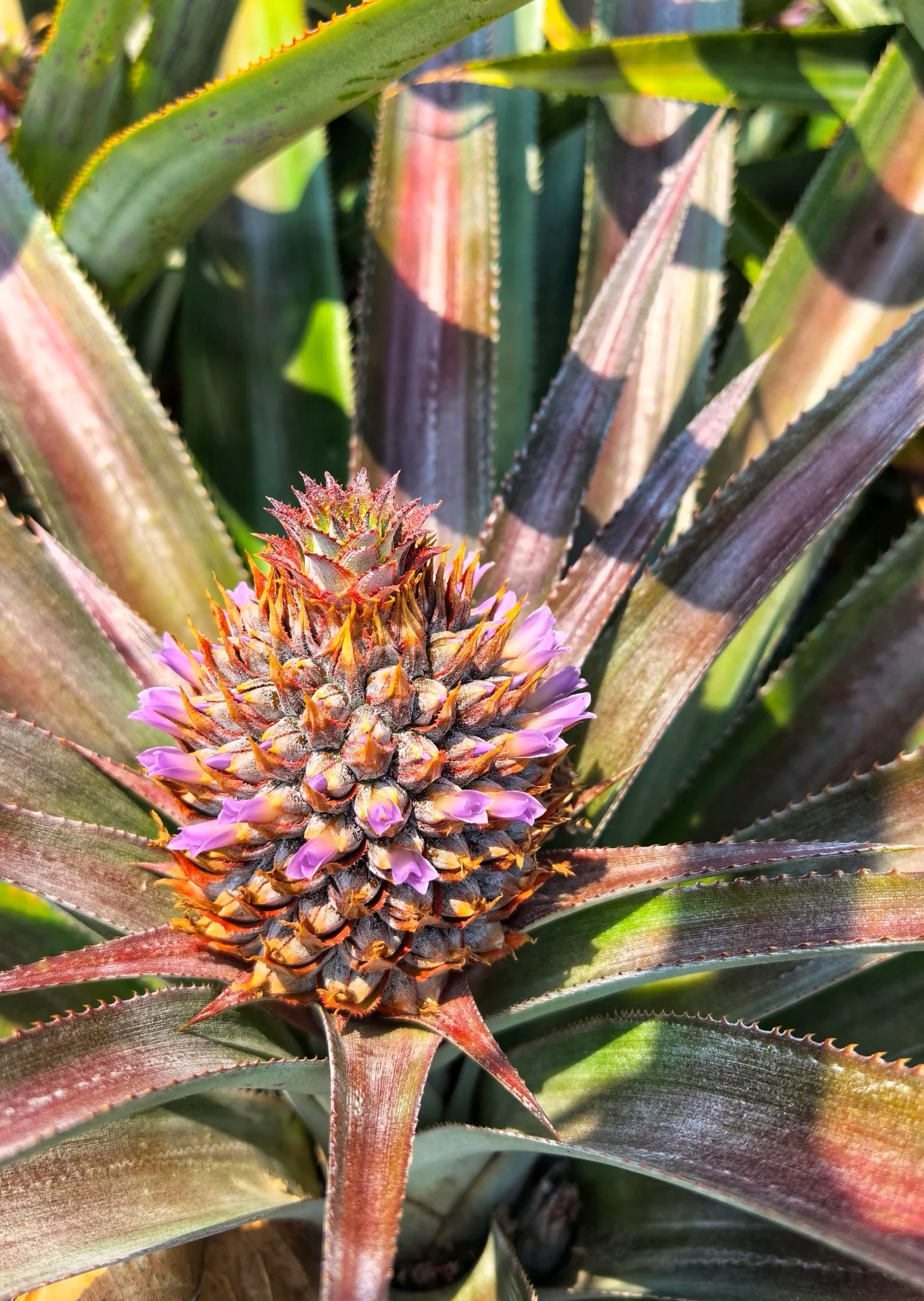 丫髻山周边的菠萝果园,由一垄一垄约半米高的菠萝树组成,类似于梯田,从山腰层层叠叠直到山脚,高低错落看起来很壮观。