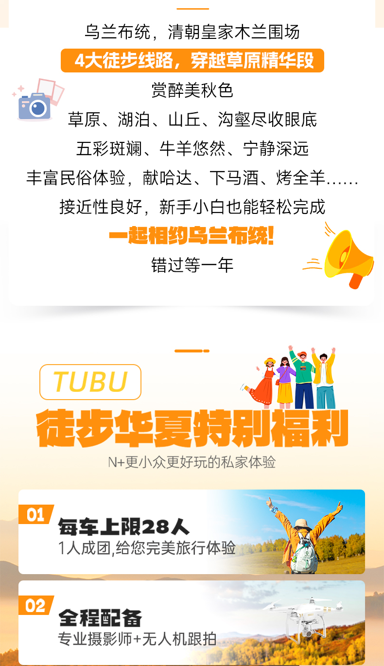 1、交通:北京出发到乌兰布统及返回北京解散的全程专属用车及司机星级服务(含司机餐补、住宿)