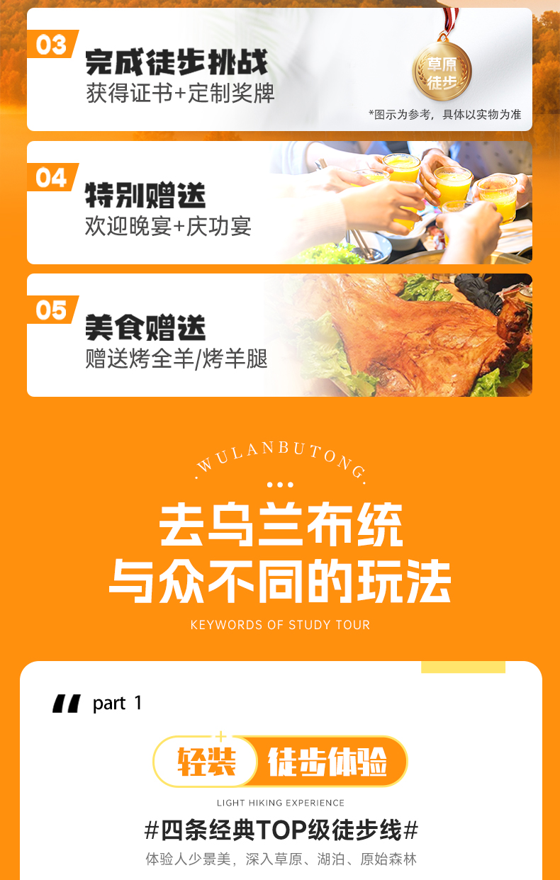 1.2米以上儿童补半价门票:乌兰布统60元/人、金山岭长城32元/人。