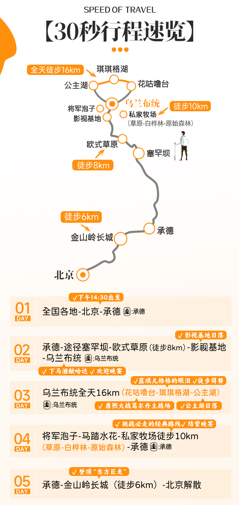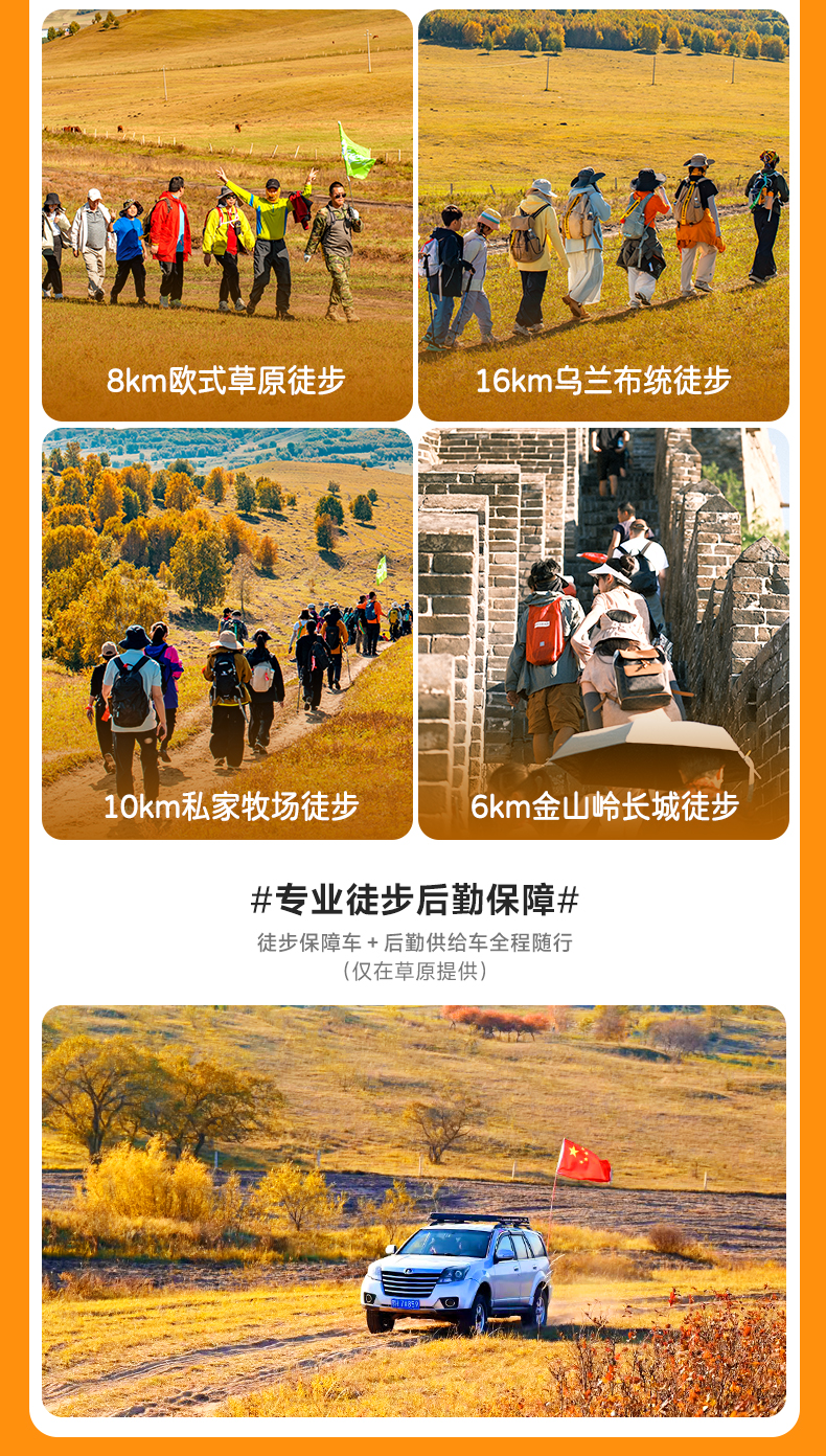 今日徒步行程结束后,我们随即乘车前往【承德】。晚上抵达时,我们将准备好【庆功晚宴】供大家享用。在旅途中成为好友,留住身边的美好!