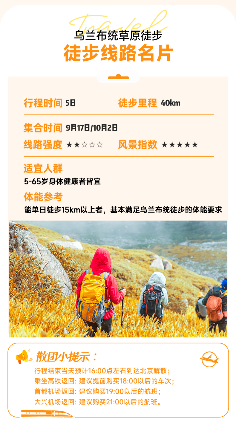中午在景区附近自由午餐或领队组织AA吃饭,下午14:00集合返京(车程约2小时)。非常幸运和大家共享草原之旅,期待我们的下次相遇。