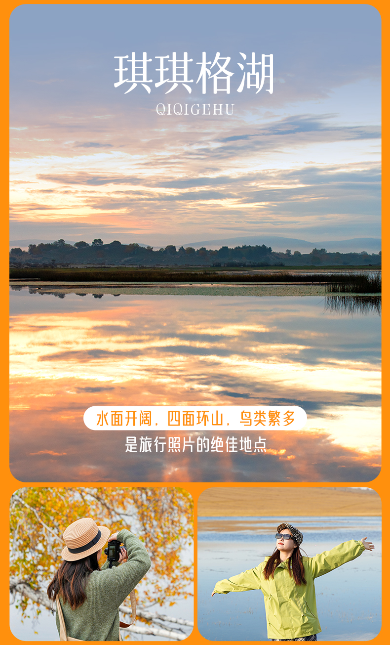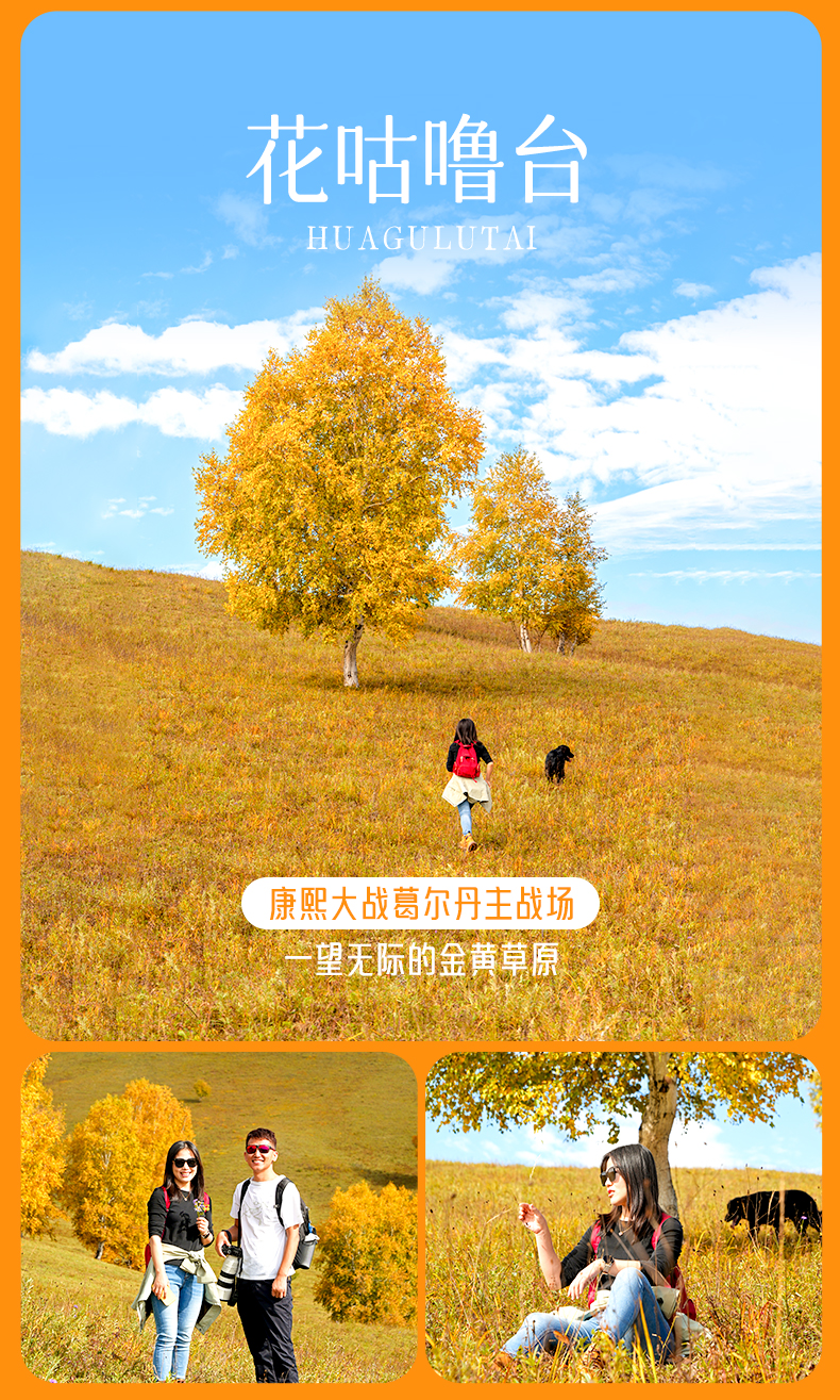 早餐后,我们收拾一下,踏上激动人心的【草原徒步挑战】(徒步全程16KM,用时约5-6h)。这里是原生态草原,途中可能会偶遇牛群、羊群,在领队带领下我们愉快地出发,一路走走停停,用相机记录每一处美丽的瞬间。在专业后勤保障越野车的保驾护航中,我们一路徒步欣赏着风景绝伦的草原风光,邂逅不一样的草原风景!沿途,我们可以看到【花咕噜台】,这是是当年康熙大战葛尔丹主战场之一,历史遗迹如今被茫茫草地遮盖,沿途牛羊悠闲、白桦错落,田园村落若隐若现。中午到达【琪琪格湖】,享用我们徒步简餐后,赏牛羊成群的琪琪格湖美景。
