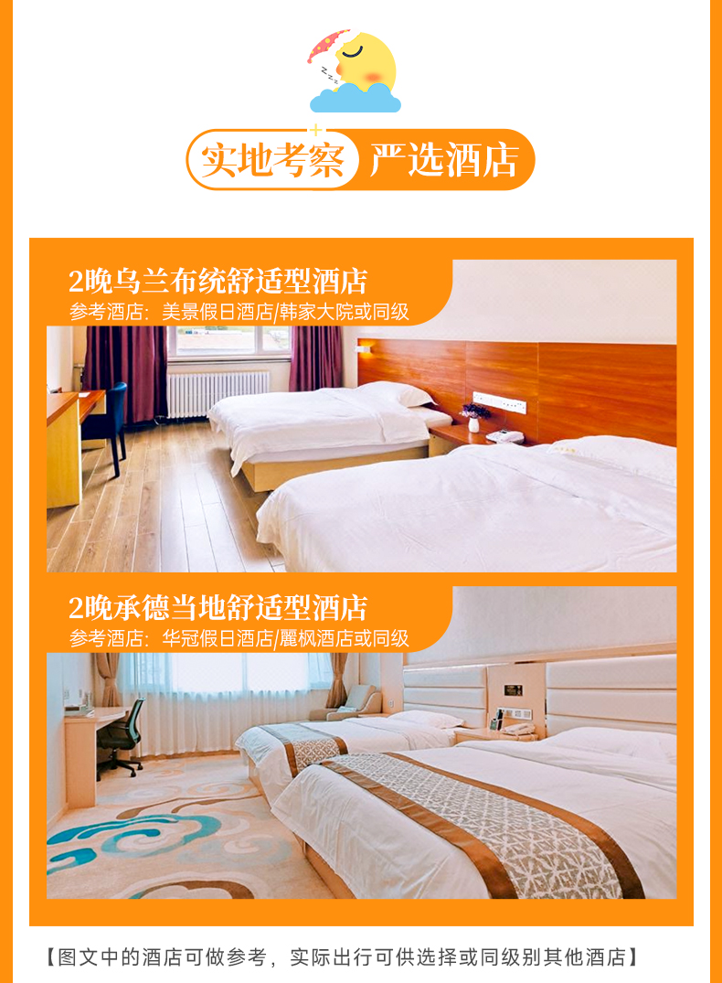 3、 行程中的所列的酒店类型,2星/2钻=经济型;3星/3钻=舒适型;4星/4钻=高档型;5星/5钻=豪华型;意为评定或条件到达相应标准的酒店,少部分地区,由于政策等因素,可能存在酒店条件满足,但未进行星钻评定的情况;