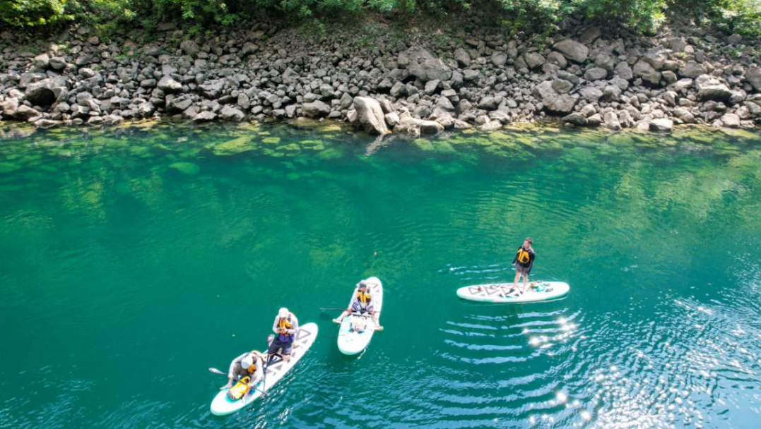 每到夏天就会有特别多的年轻人会来到这里玩浆板,清澈的水让浆板似漂浮在空中,特别神奇。