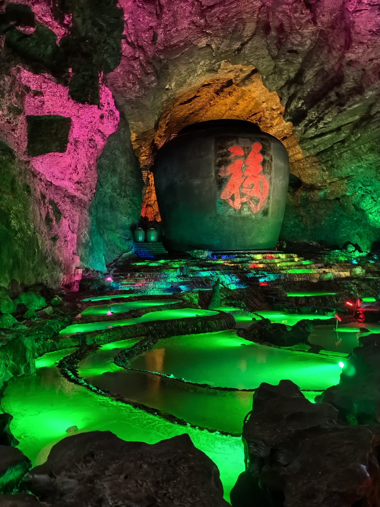 11:00 抵达【洞天酒海景区】,洞藏酒与喀什特溶洞的混搭,让自然景观与人文景观融为一体,设置了天成酒窖、金屋藏酒、饮中八仙、石窟酒佛、一线天、饮酒思源、地下酒河、百福酒廊、天下第一坛、“留香岁月”、藏酒博物馆等 。