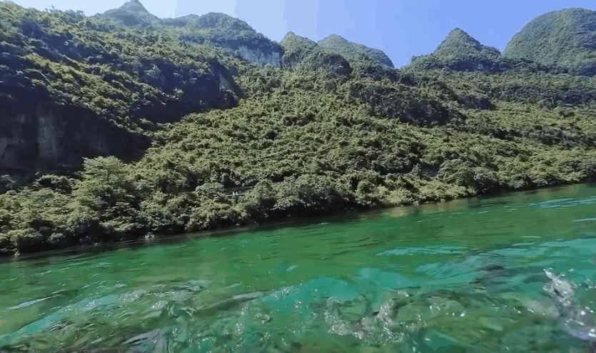 2022年,《航拍中国》第四季也来到了广西河池,对都安地下河国家地质公园进行了拍摄——“盛夏时节,看起来像海的颜色,很难不吸引人们飞身一跃”