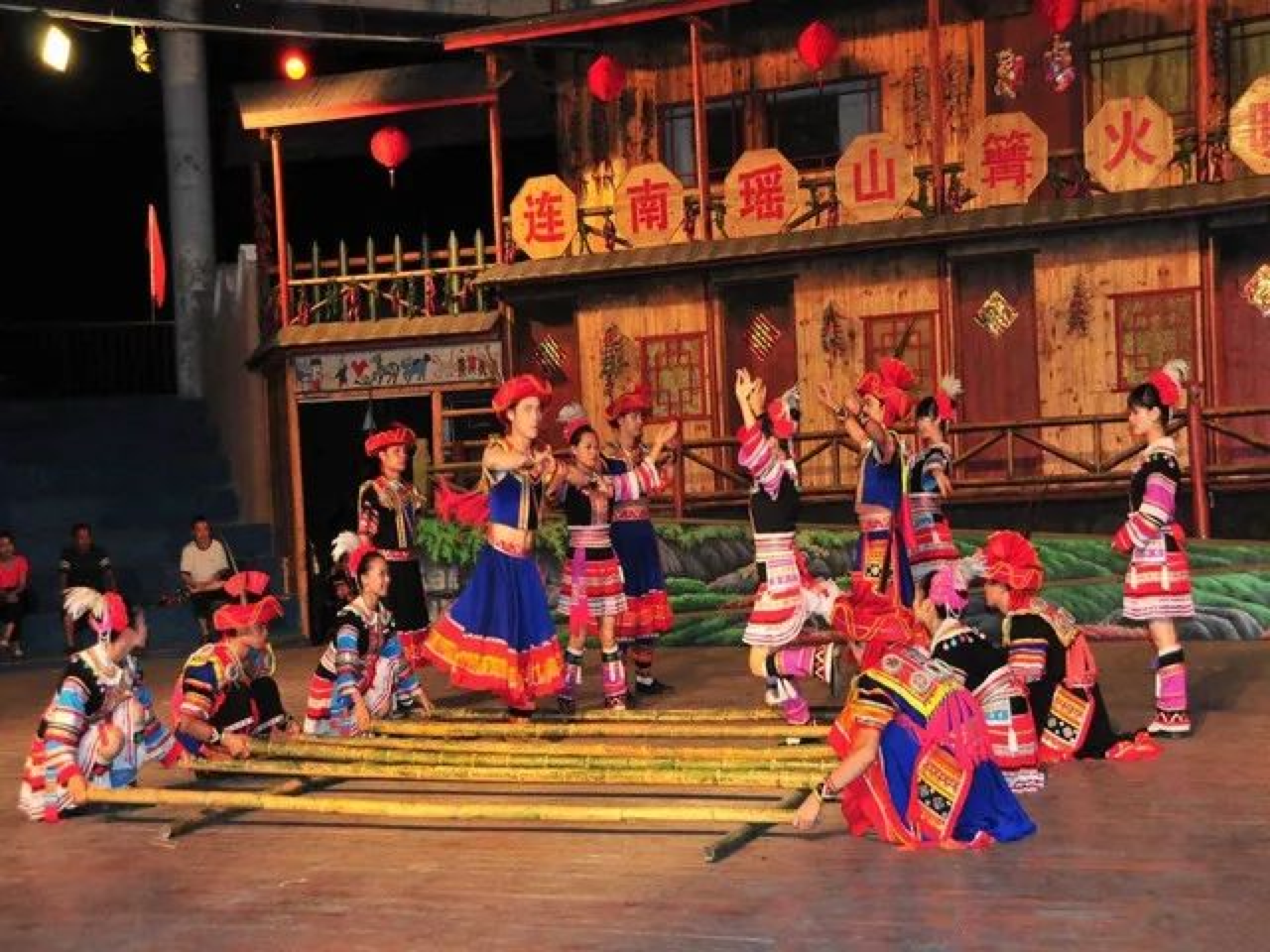 4. 赠送瑶寨篝火晚会:欣赏非物资文化遗产排瑶民歌,与瑶族"阿贵"及"沙腰妹"对饮瑶酒,手拉手共跳瑶家舞